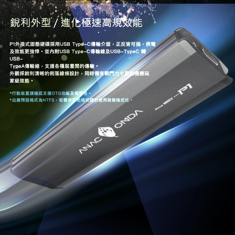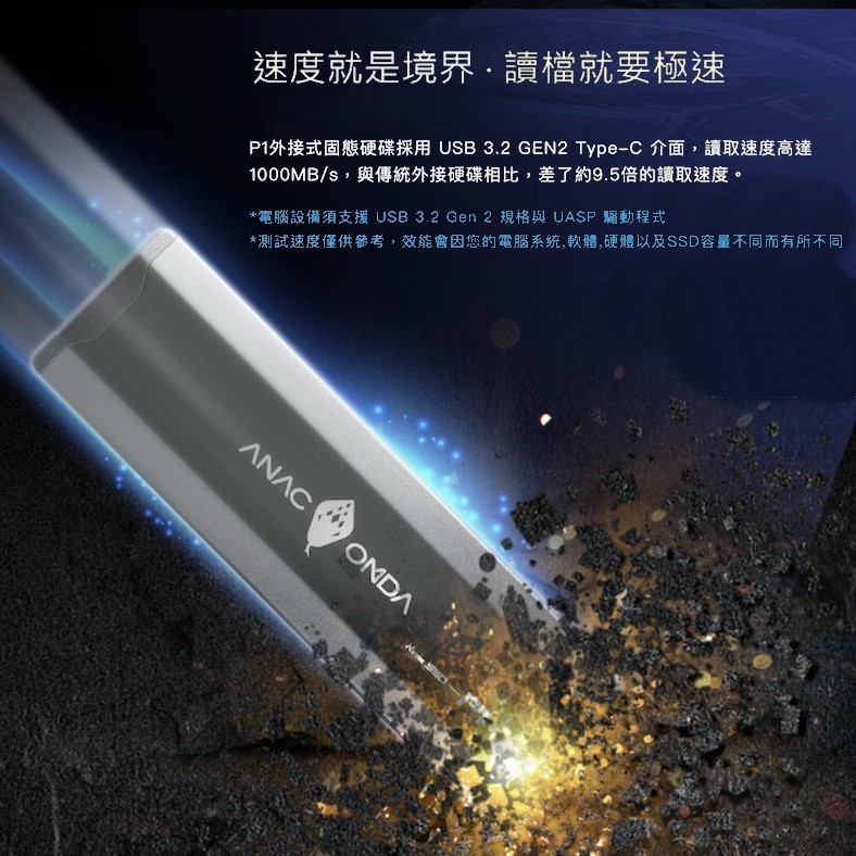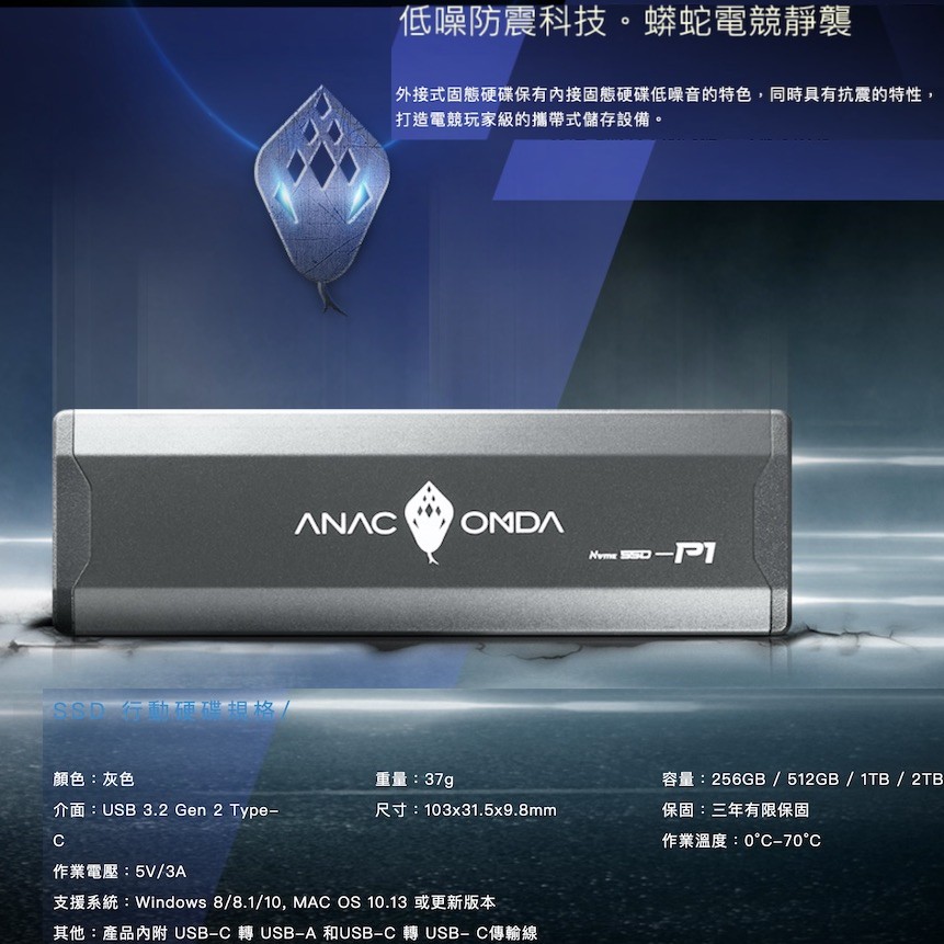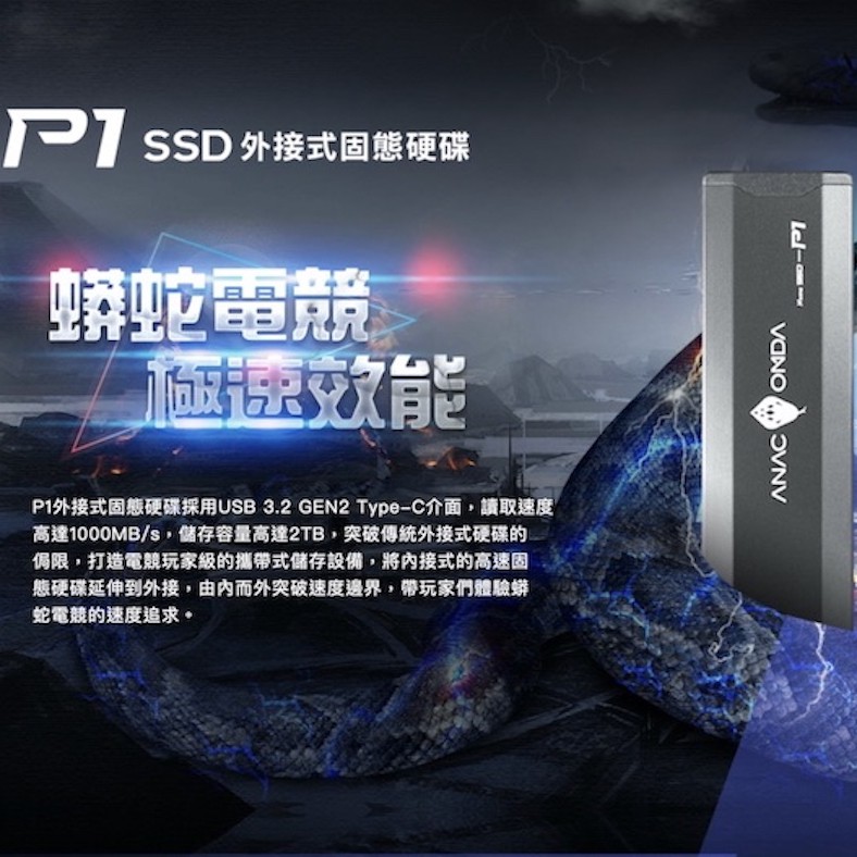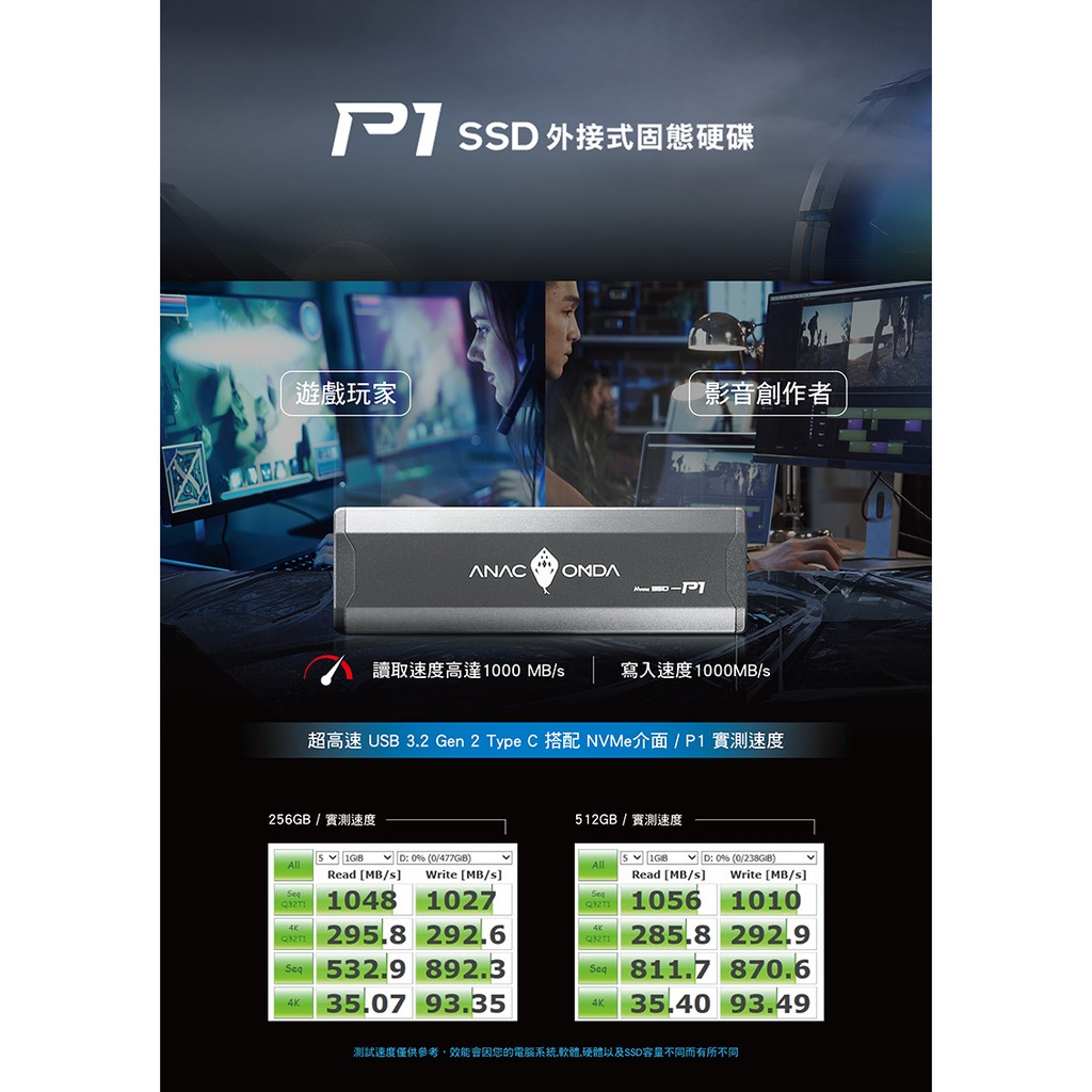 ANACOMDA 巨蟒 P1 256GB USB 3.2 Gen2 Type C 外接式 固態硬碟 SSD 附傳輸線256GBSSDANACOMDA巨蟒 SSD固態硬碟&記憶體模組 官方旗艦店