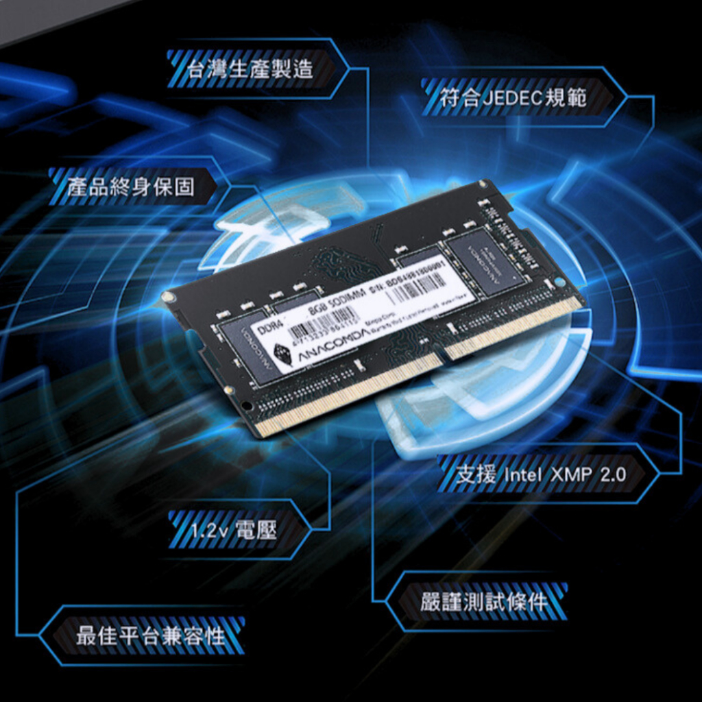 ANACOMDA 巨蟒 DDR4 3200 SODIMM 8GB 16GB 筆記型專用記憶體 有限終身保固 D4 記憶體8GB|16GBRAMANACOMDA巨蟒 SSD固態硬碟&記憶體模組 官方旗艦店