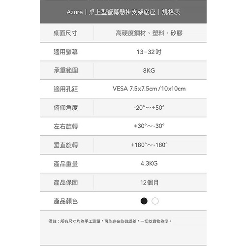 桌上型螢幕懸掛支架底座黑OthersAzure Planet 蔚藍星球