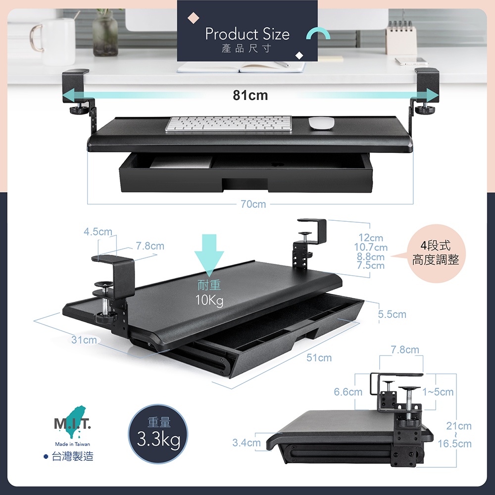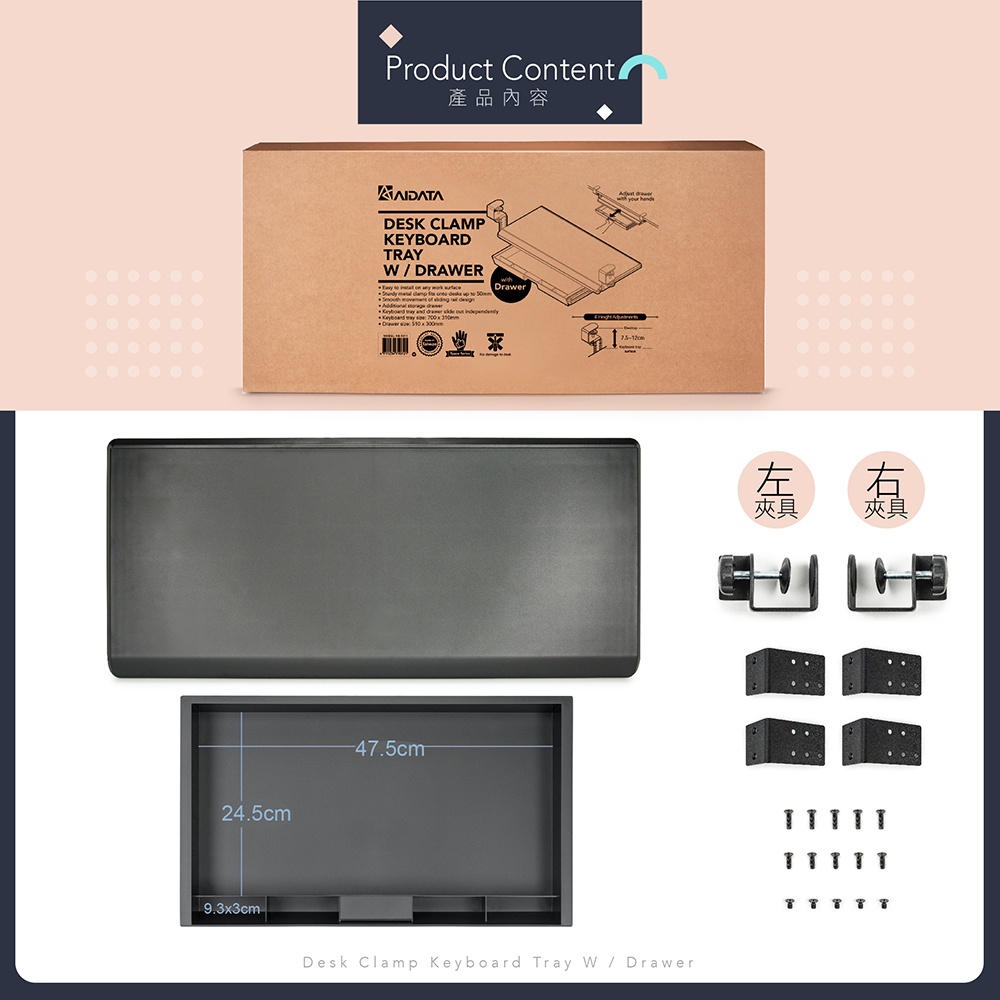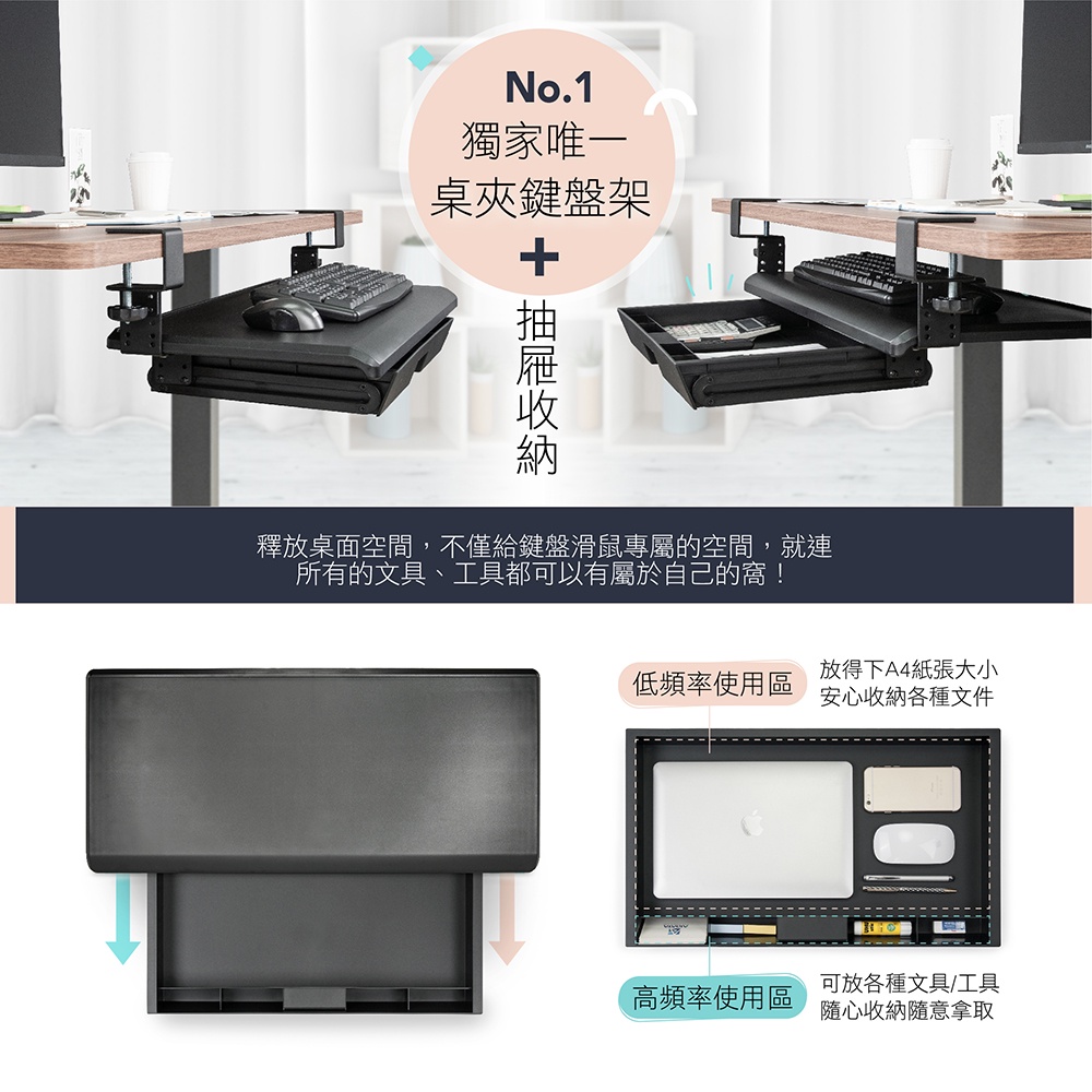 AIDATA 愛得他 人體工學可調高度鍵盤架 附抽屜/70*31cm KB-5011白色|黑色OthersAIDATA 愛得他