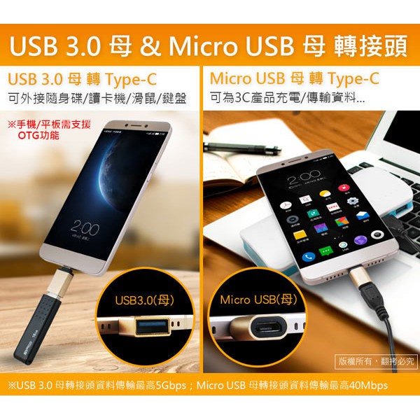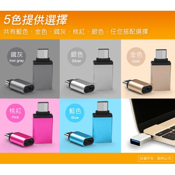 aibo USB 3.1 Type-C 轉接頭組(USB 3.0母 & Micro USB母) 【現貨】藍色|金色|鐵灰色|桃紅色|銀色Powerline Adaptersaibo 3C生活館