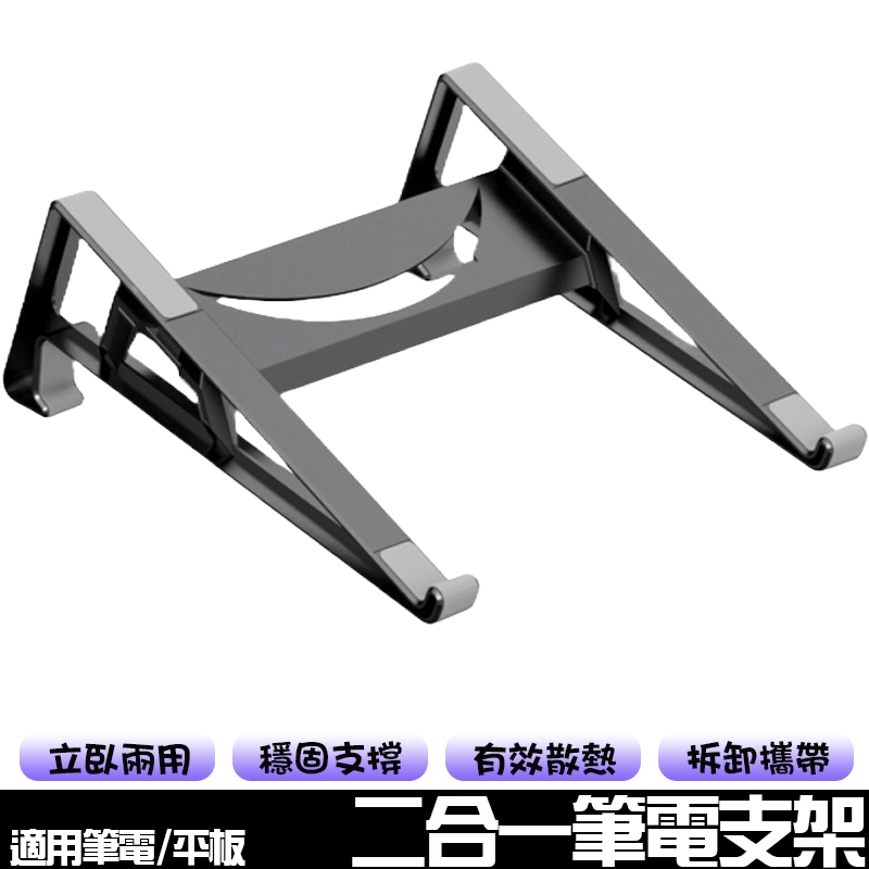 二合一筆記型電腦支架 支架 適用平板/筆電 平板支架 筆電支架 可拆卸支架 筆電散熱支架 立臥支架 筆電收納架黑色Laptop Stands & Foldable Laptop DesksADHIL旗艦店