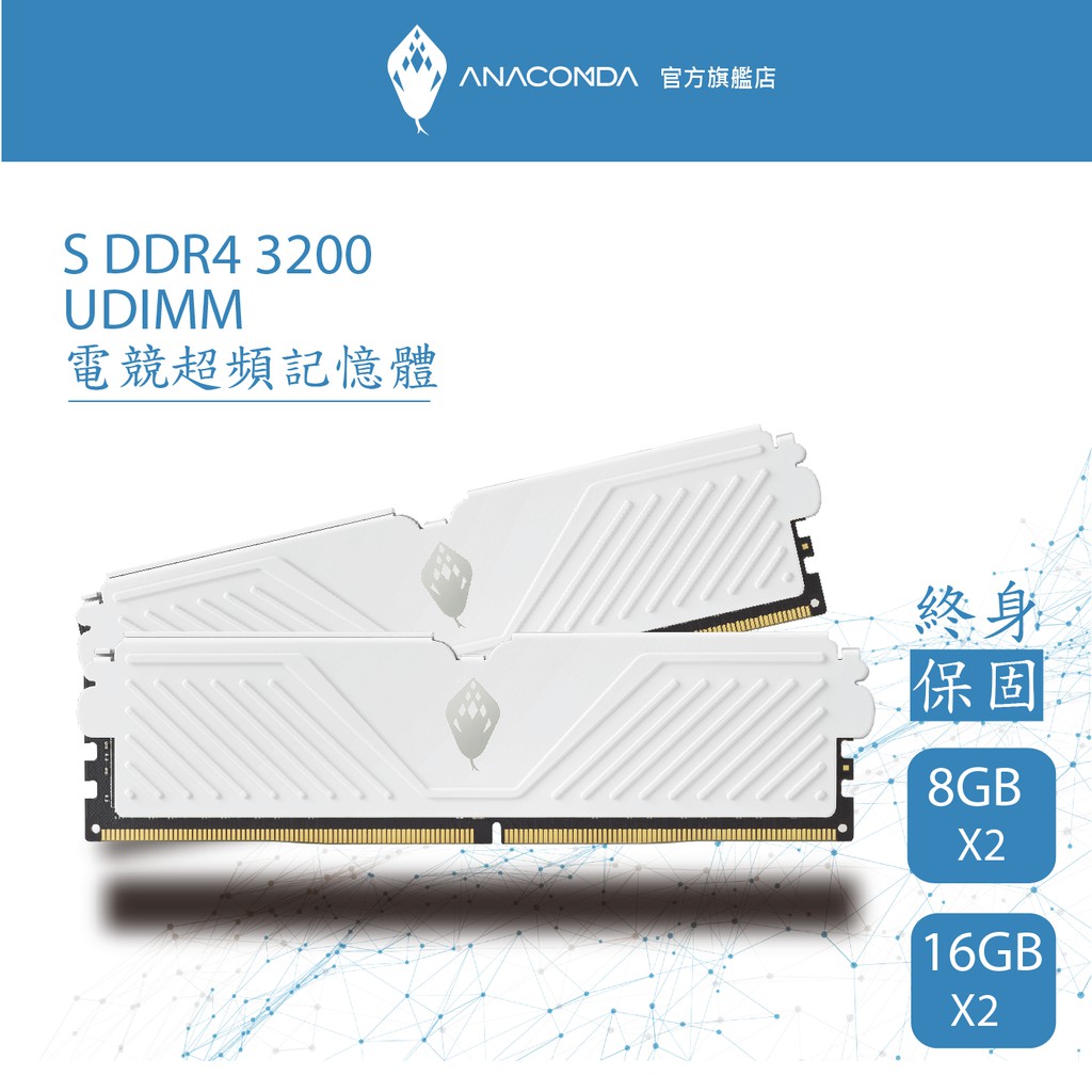 ANACOMDA 巨蟒 S系列 DDR4 3200 32GB (16GBX2) 雙通 UDIMM 超頻 桌上型 記憶體32GB (16GB×2)RAMANACOMDA巨蟒 SSD固態硬碟&記憶體模組 官方旗艦店