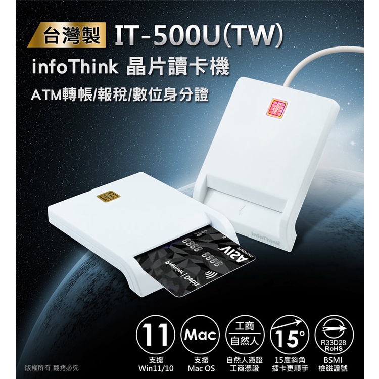 infoThink訊想 IT-500U ATM 晶片讀卡機 台灣製【現貨】支援Mac Win11健保卡 自然人憑證台灣製造全新包裝USB Hubs & Card Readersaibo 3C生活館