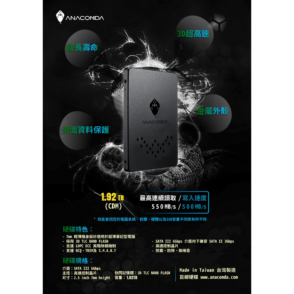 ANACOMDA巨蟒 TB 960GB 1920GB SATA III 2.5吋 內接 固態硬碟 TLC SSD 大容量960 GB|1920 GBSSDANACOMDA巨蟒 SSD固態硬碟&記憶體模組 官方旗艦店
