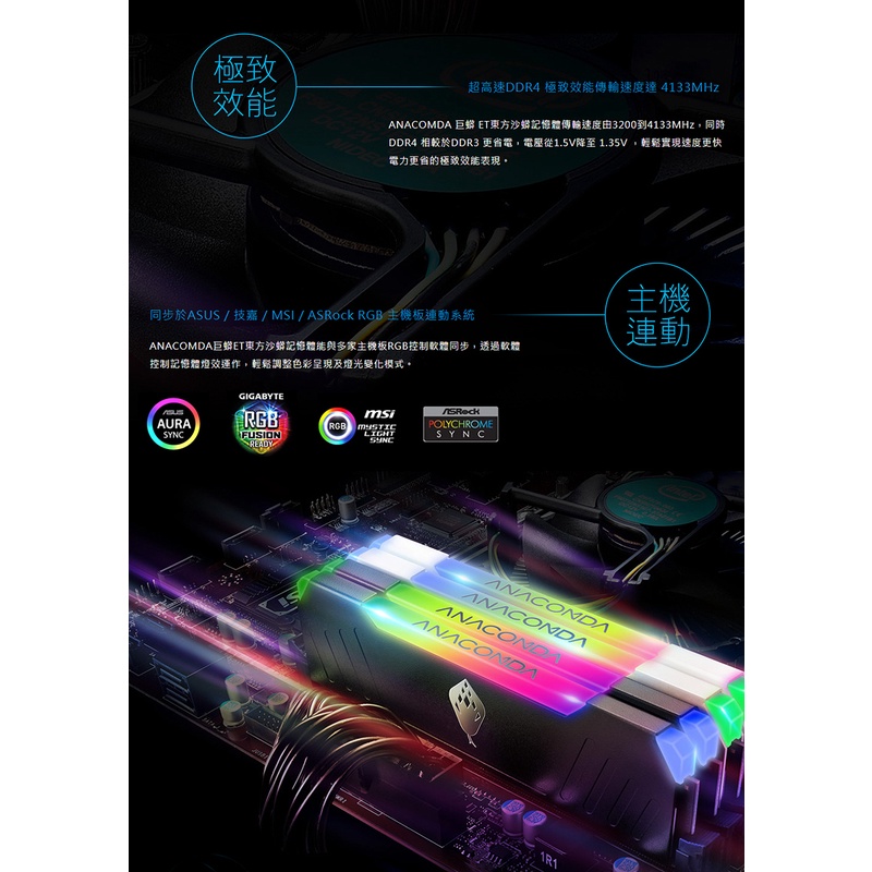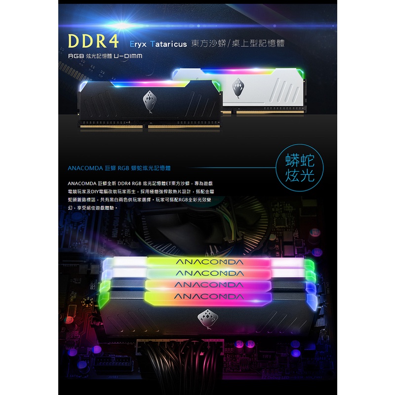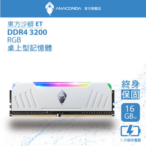 ANACOMDA 巨蟒 ET DDR4 3200 32GB (16GBX2) 雙通 RGB 電競 超頻 桌上型 記憶體白色 (高:43mm)|黑色 (高:43mm)|白色 (高:40mm)|黑色 (高:40mm)RAMANACOMDA巨蟒 SSD固態硬碟&記憶體模組 官方旗艦店