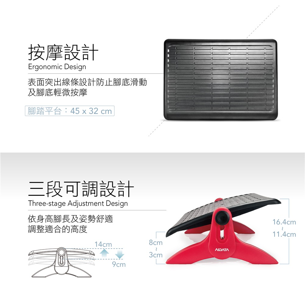 AIDATA 愛得他 人體工學 三段式可調腳踏板/兩色可選 FR-1002P【黑灰】三段可調腳踏板|【黑紅】三段可調腳踏板OthersAIDATA 愛得他