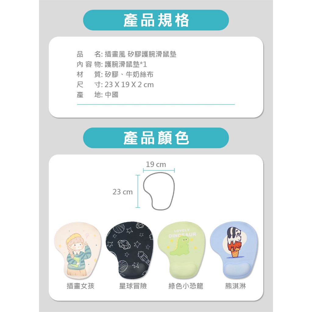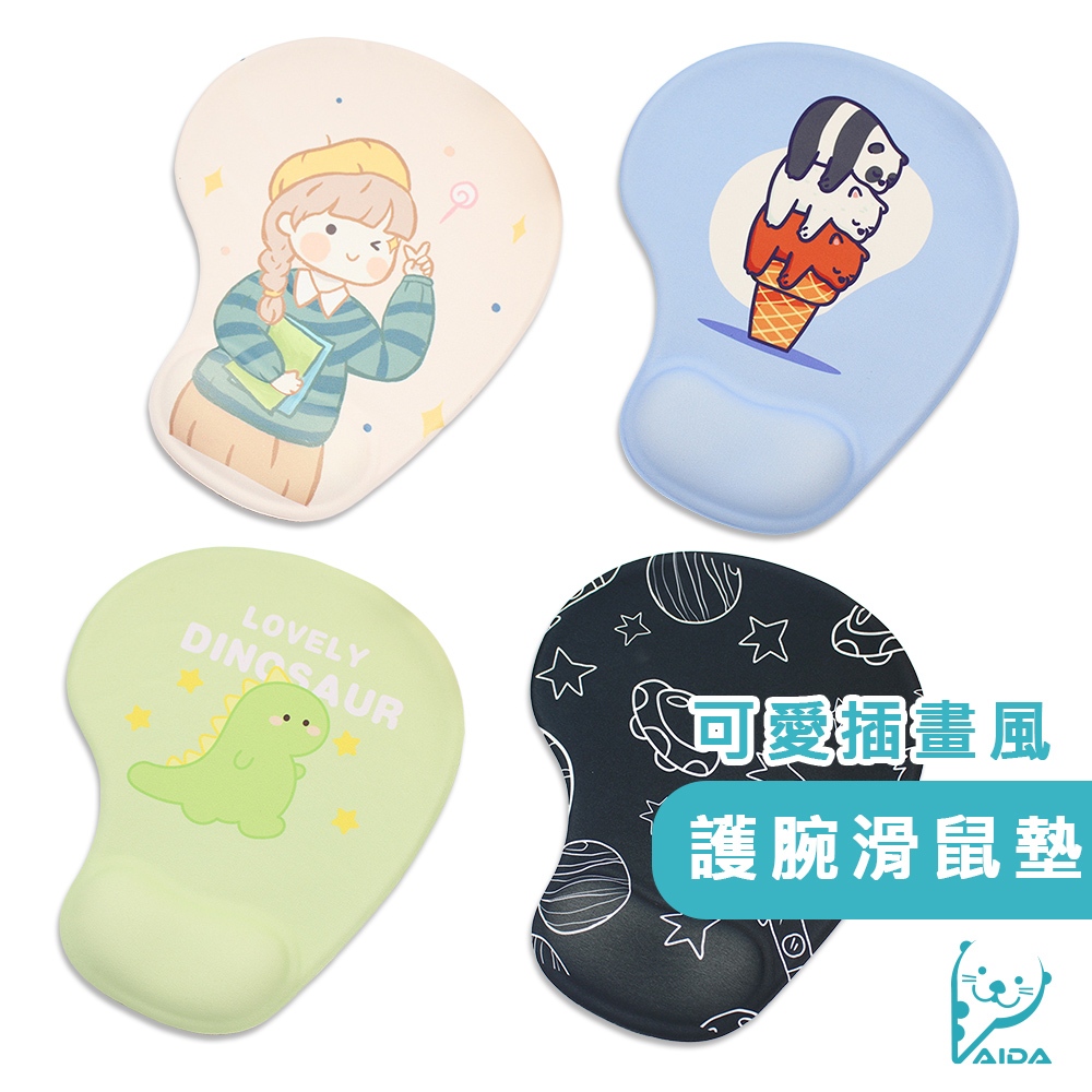 【AIDA】插畫風護腕滑鼠墊熊淇淋|綠色小恐龍|插畫女孩|星球冒險Mouse PadsAIDA品牌旗艦館-防窺/抗藍光 保護貼專賣
