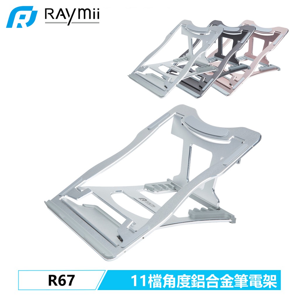 瑞米 RAYMII R67 6段11種檔位角度 折疊鋁合金筆電增高支架銀色|灰色|玫瑰金Laptop Stands & Foldable Laptop Desks【瑞米 Raymii】專業支架第一品牌 螢幕支架 筆電架 平板架 電視架 升降桌