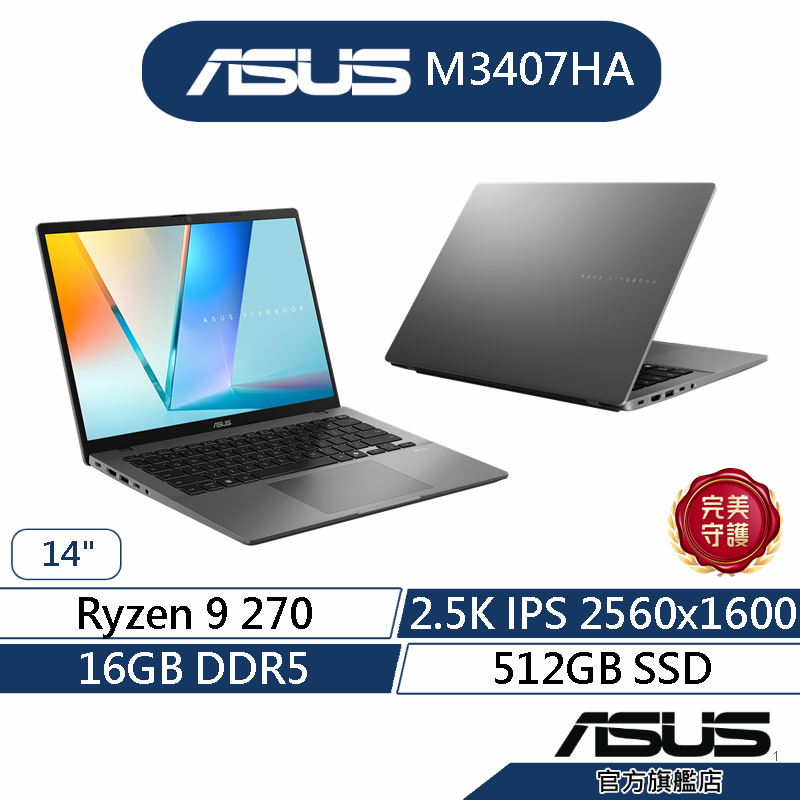 ASUS華碩 Vivobook S14 M3407HA 14吋筆電 (R9-270/16G/512G/WIN11)登記送夜幕灰|夜幕灰+16G(贈原廠安裝服務卡)ASUS華碩官方旗艦店