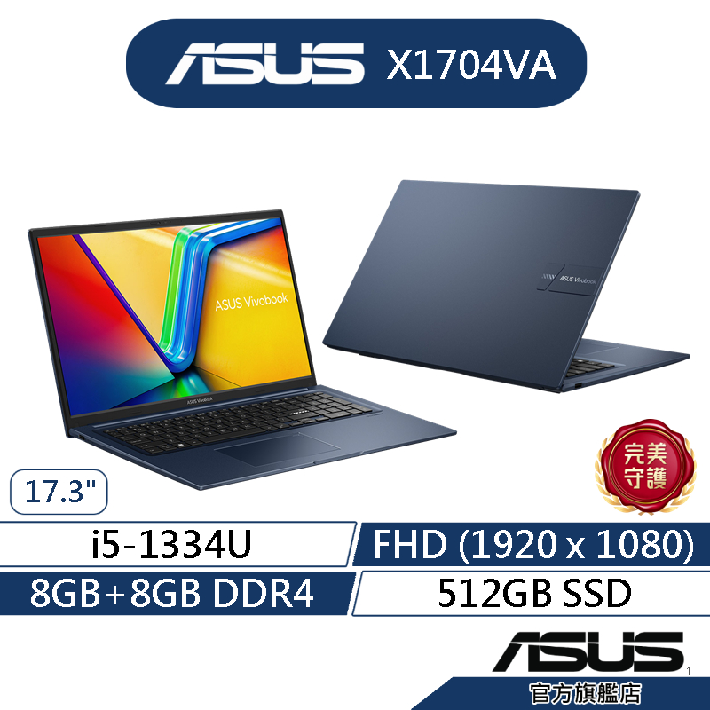 ASUS華碩 Vivobook 17 X1704VA 17吋筆電(i5-1334U/8G+8G/512G)登記送蝦幣午夜藍ASUS華碩官方旗艦店