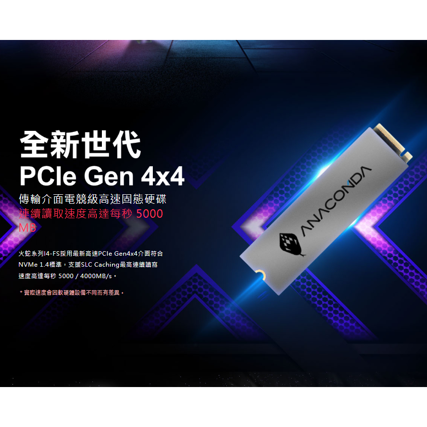 ANACOMDA 巨蟒 I4FS 1TB PCIe Gen4x4 NVMe M.2 SSD 固態硬碟 TLC 5年保固ANACOMDA 巨蟒 I4FS 1TB PCIe Gen4x4 NVMe M.2 SSD 固態硬碟 TLC 5年保固SSDANACOMDA巨蟒 SSD固態硬碟&記憶體模組 官方旗艦店