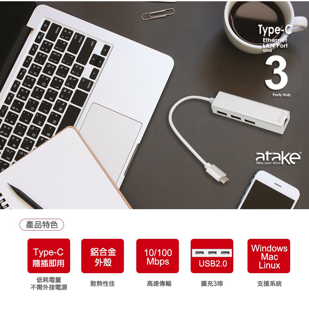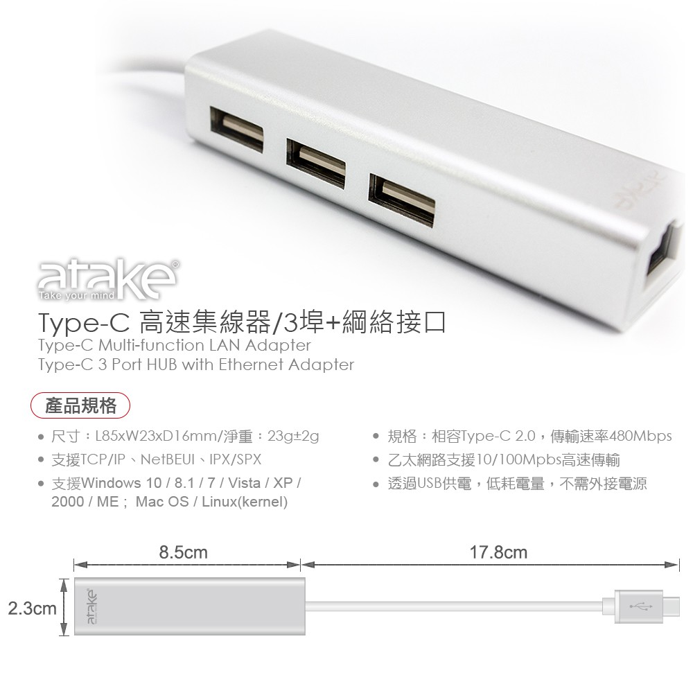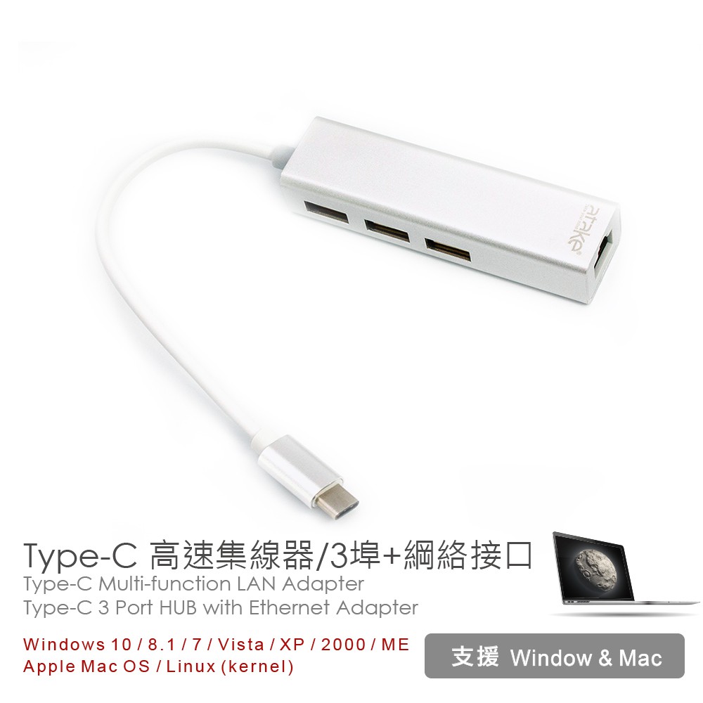 【ATake】Type-C 轉USB3.0 (含1G網路孔) TypeC網路轉接線 TypeC轉RJ45 轉接線【ATake】Type-C 轉USB3.0 (含1G網路孔) TypeC網路轉接線 TypeC轉RJ45 轉接線Othersatake台灣官方旗艦店