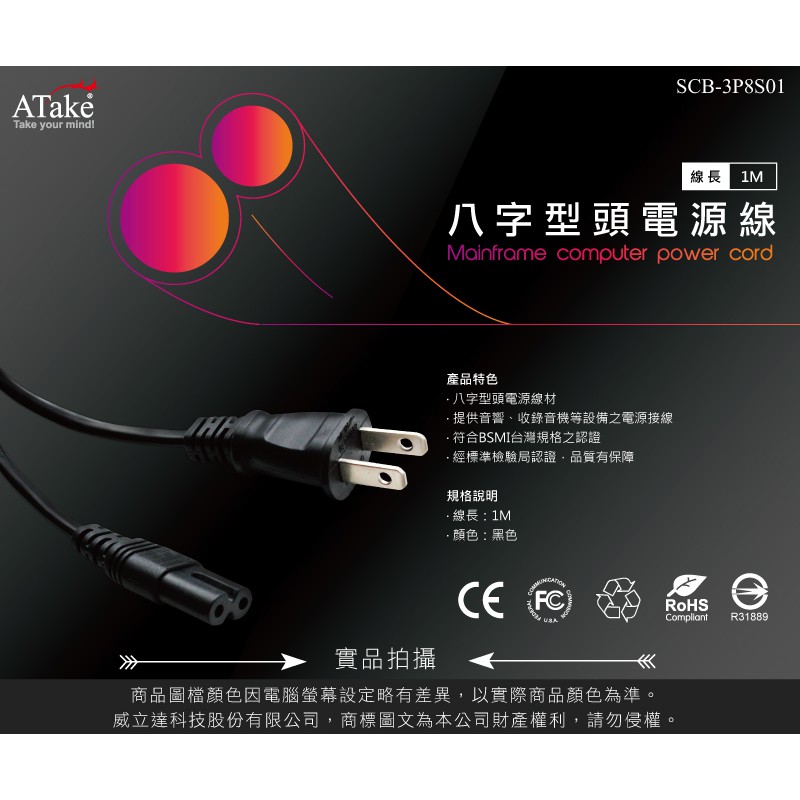 【atake】8字頭家用電器電源線(1m) 8字電源線/電器用品電源線【atake】8字頭家用電器電源線(1m) 8字電源線/電器用品電源線Network Cables & Connectorsatake台灣官方旗艦店