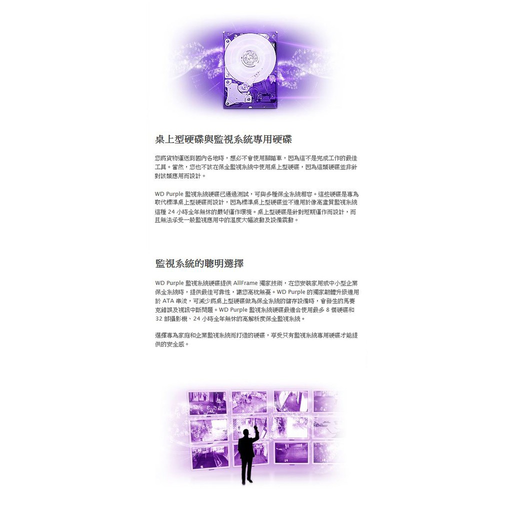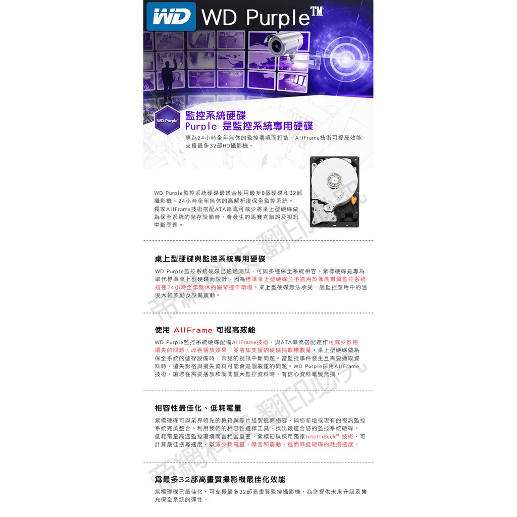 4TB WD 紫標 監控硬碟 WD40PURZ SATA介面 3.5吋 DVR硬碟 三年保固單買價Hard Drives【AI智能監控】 監視器材 監控主機 DVR 攝影機 無線針孔 門禁防盜 對講機