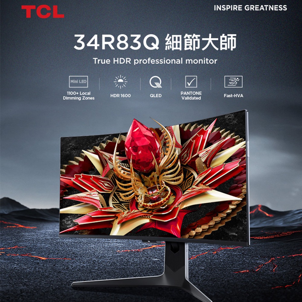 TCL MINI LED QD電競顯示器 34R83Q 真實還原 清晰不脫尾 Beutii