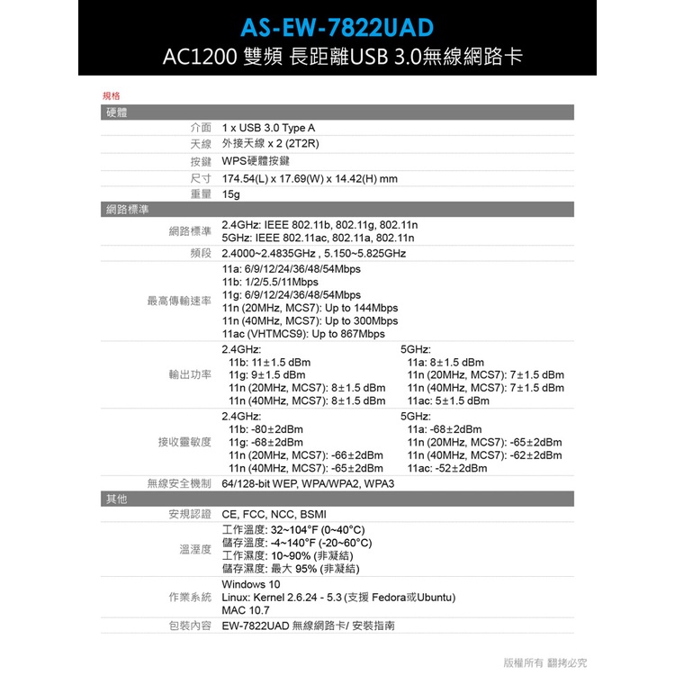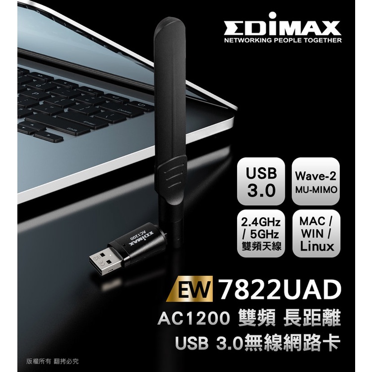 EDIMAX訊舟 7822UAD AC1200 雙頻 長距離 USB 3.0無線網路卡【現貨】 無線網卡 USB網卡EDIMAX訊舟 7822UAD AC1200 雙頻 長距離 USB 3.0無線網路卡【現貨】 無線網卡 USB網卡Wireless Adapters & Network Cardsaibo 3C生活館