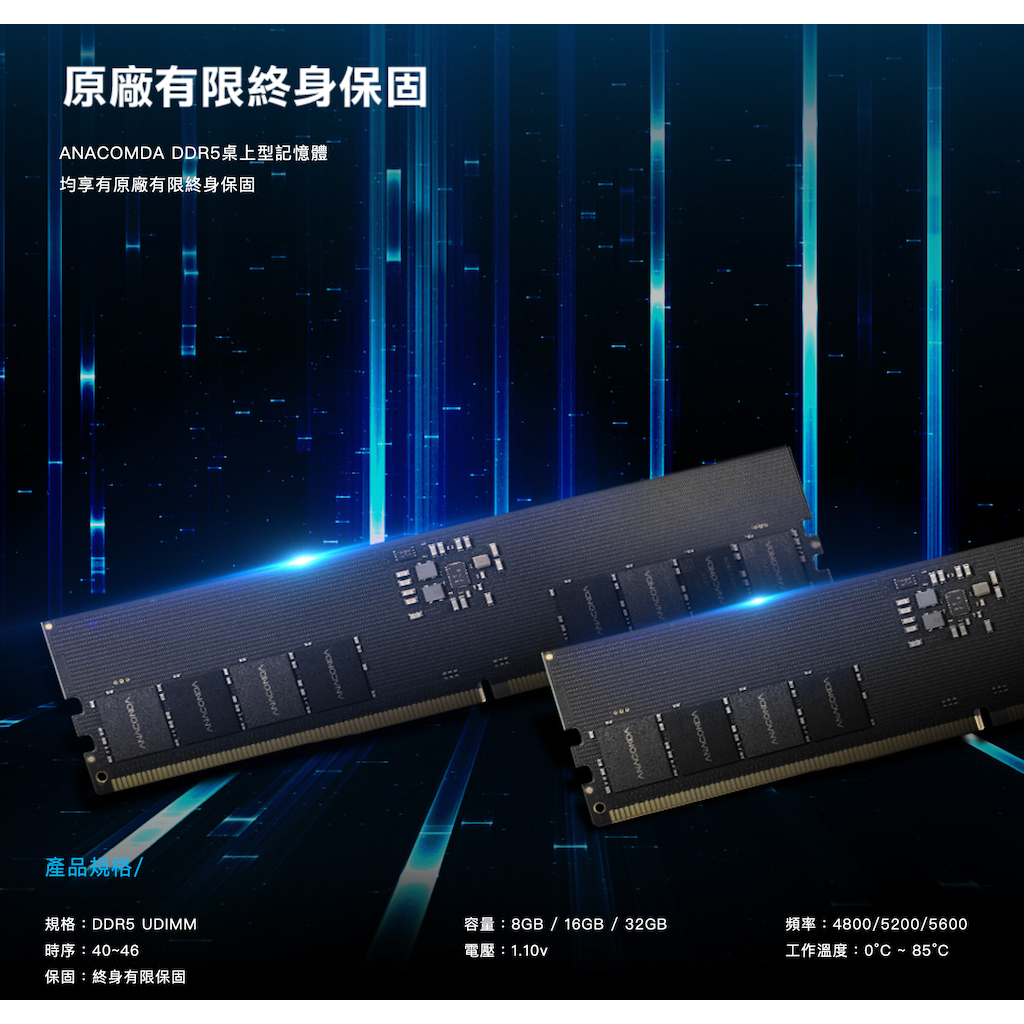ANACOMDA 巨蟒 DDR5 5200 5600 UDIMM 16GB 32GB 有限終身保固 D5 桌上型 記憶體5200 MT/s 16GB|5600 MT/s 16GB|5600 MT/s 32GBRAMANACOMDA巨蟒 SSD固態硬碟&記憶體模組 官方旗艦店