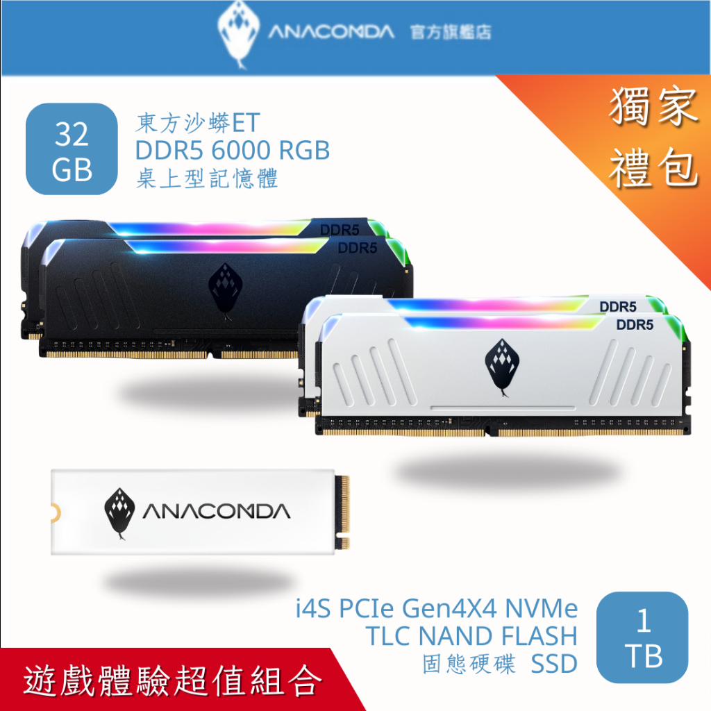 ANACOMDA巨蟒 組合包 I4S 1TB SSD /ET DDR5 6000 32GB(16Gx2) RGB 記憶體組合包 – DDR5 白|組合包 – DDR5 黑OthersANACOMDA巨蟒 SSD固態硬碟&記憶體模組 官方旗艦店
