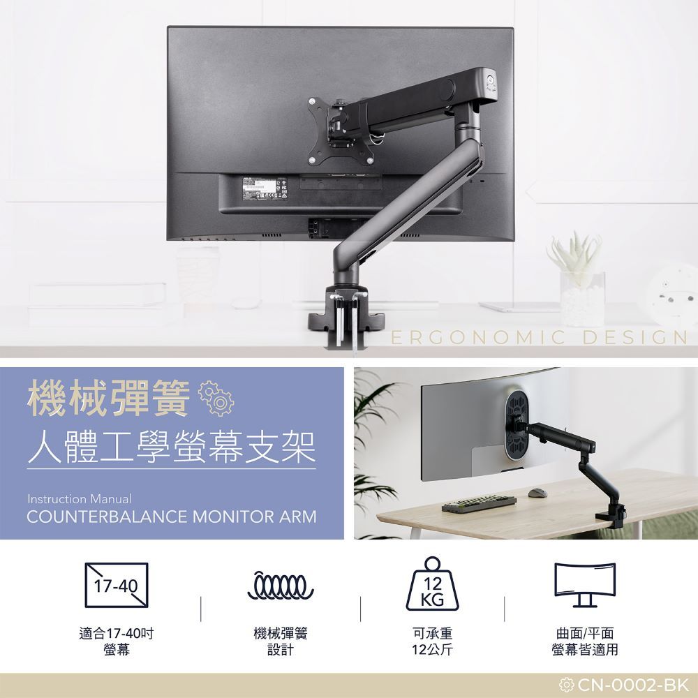 AIDATA 愛得他 人體工學機械彈簧 螢幕支架 /黑色 支援40吋螢幕 12KG承重 曲面、平面螢幕適用CN-0002AIDATA 愛得他 人體工學機械彈簧 螢幕支架 /黑色 支援40吋螢幕 12KG承重 曲面、平面螢幕適用CN-0002OthersAIDATA 愛得他