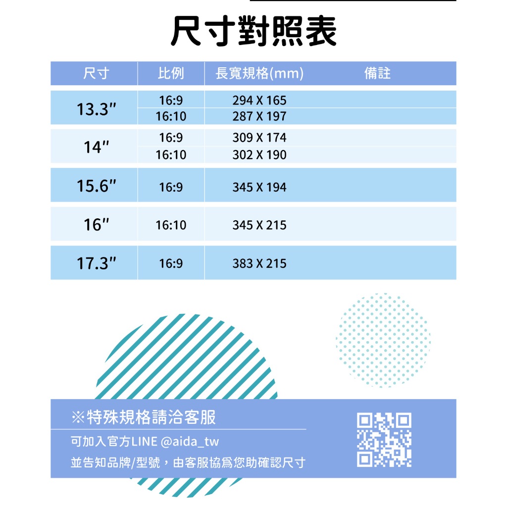 【AIDA】 抗藍光保護貼 12.5~17.3吋 筆電螢幕專用 (MIT台灣製造/抗藍光/防眩光)抗藍光12.5吋 (16:9)|抗藍光13.3吋 (16:9)|抗藍光13.3吋 (16:10)|抗藍光14吋 (16:9)|抗藍光14吋 (16:10)|抗藍光15.6吋 (16:9)|抗藍光16吋 (16:10)|17.3吋 (16:9) *請選宅配*|抗藍光14吋 (16:9)福利品僅拆封Laptop Skins & CoversAIDA品牌旗艦館-防窺/抗藍光 保護貼專賣