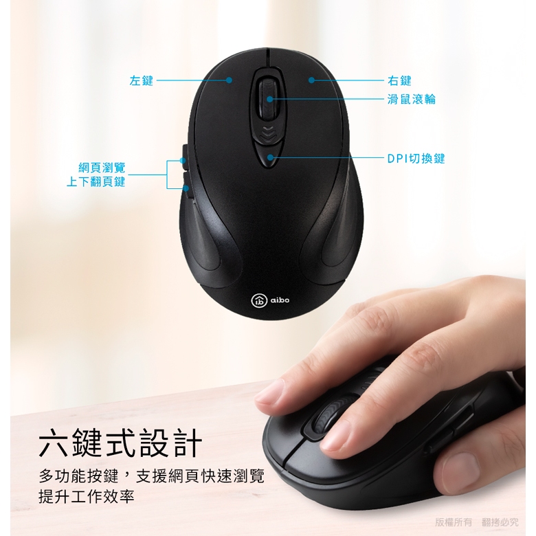 aibo 六鍵式 極靜音無線滑鼠【現貨】靜音滑鼠 無線滑鼠 自動休眠 免驅動 2.4G滑鼠 三段DPI 省電 辦公滑鼠