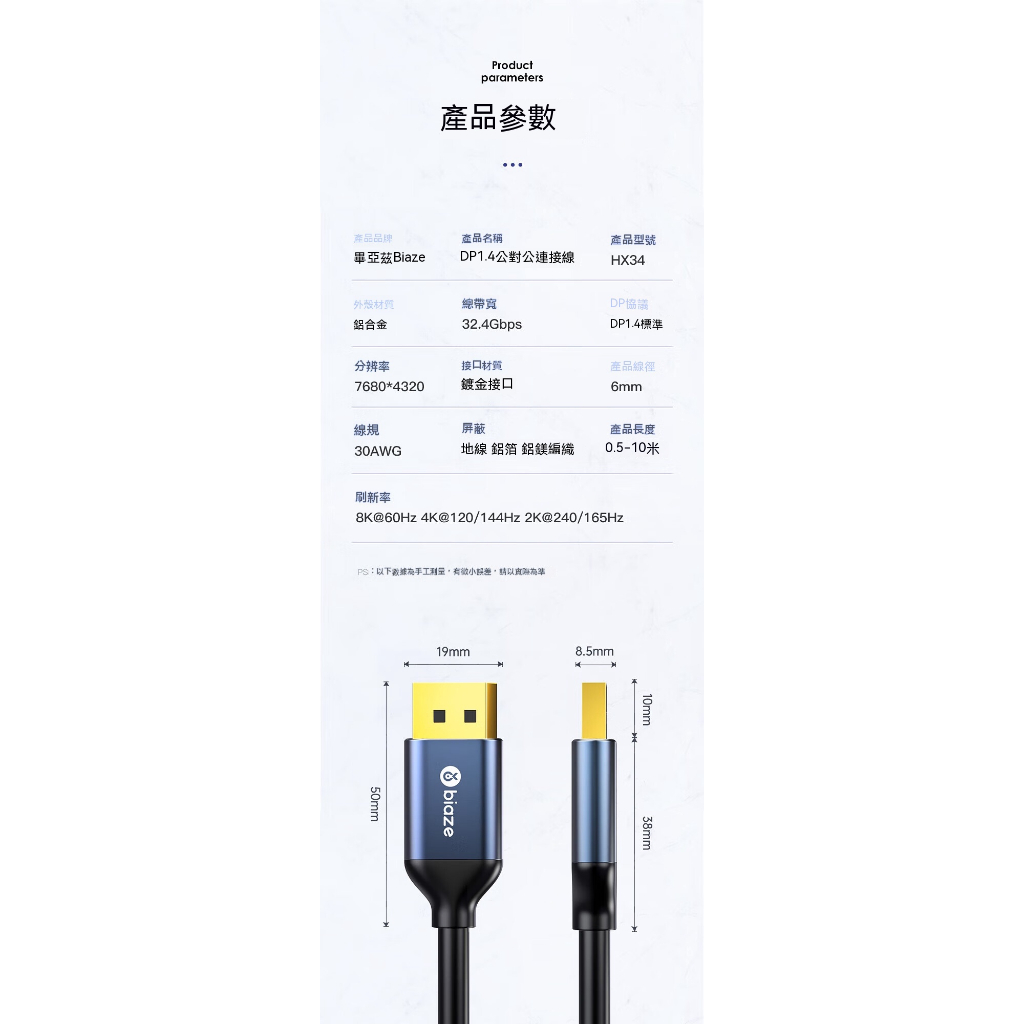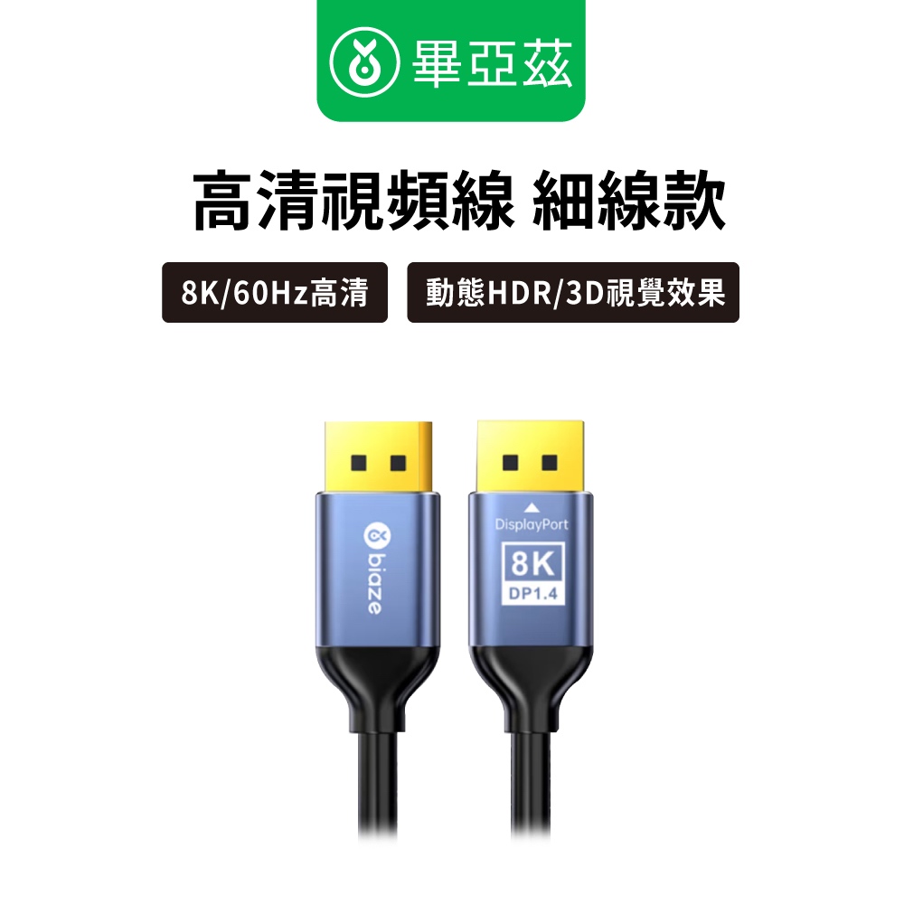 biaze畢亞茲 DP線1.4版 8K/60hz 4K/240hz(DSC)高清視頻線 細線款 1m/2m/3m/5m5m|1m|2m|3mNetwork Cables & ConnectorsBIAZE畢亞茲 品牌旗艦館|台灣總代理