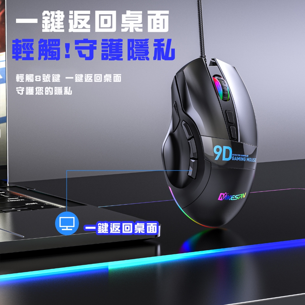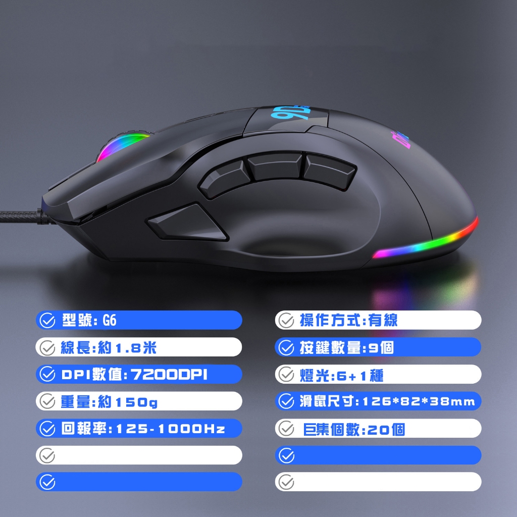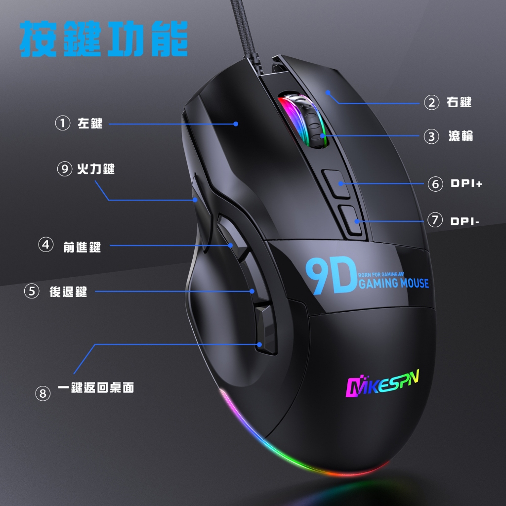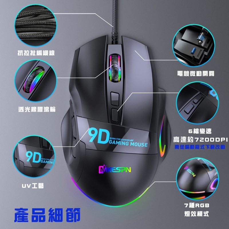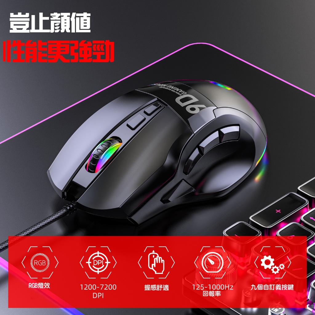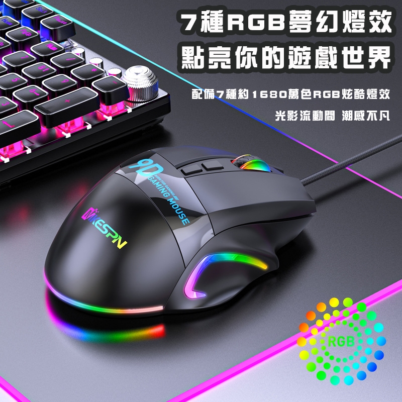 RGB電競有線滑鼠 滑鼠 電腦滑鼠 USB滑鼠 RGB鼠標 DPI調節 電競滑鼠 巨集滑鼠 遊戲滑鼠 辦公編程 辦公滑鼠黑色MiceADHIL旗艦店