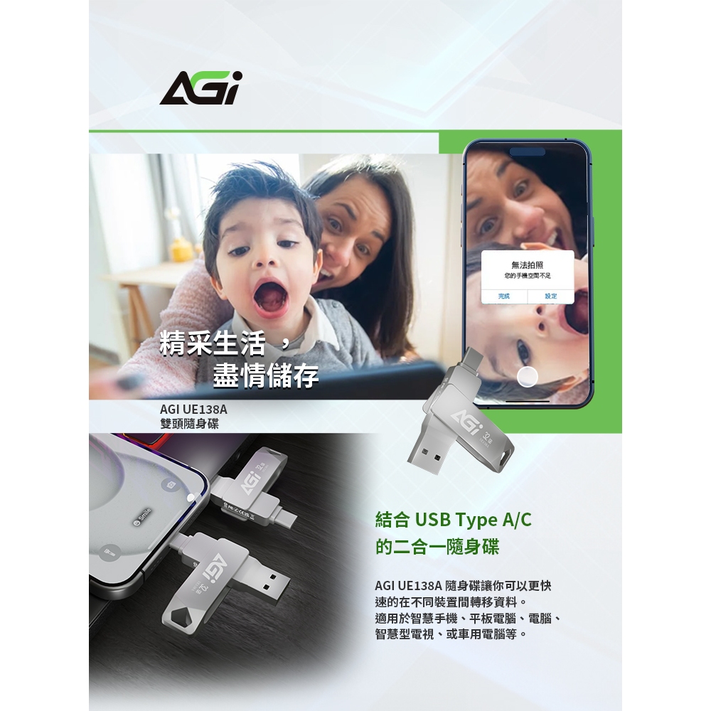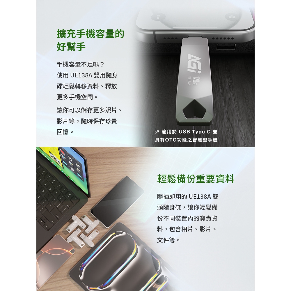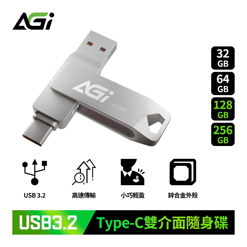 【限時優惠】AGi亞奇雷 UE138A Type-C雙介面隨身碟|USB 3.2|iPhone16/iPad/手機平板適32GB|64GB|128GB|256GBFlash Drives & OTGAGI 亞奇雷官方旗艦館