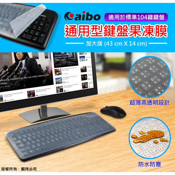 aibo 加大版通用型 標準型鍵盤膜 果凍膜 鍵盤膜 鍵盤保護膜 鍵盤周邊 適用各廠牌標準型104鍵鍵盤【現貨】