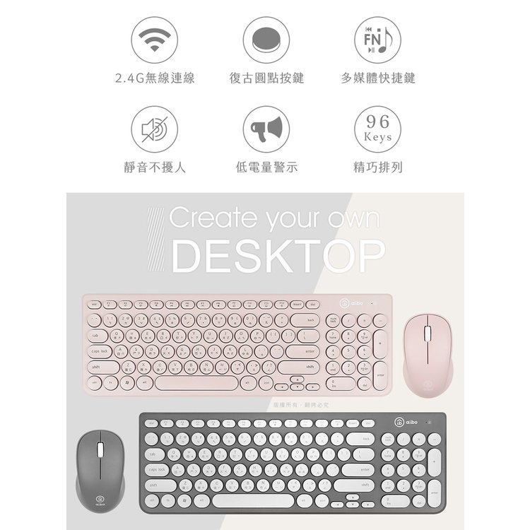 aibo 波爾卡圓點 2.4G無線鍵盤滑鼠組【現貨】無線鍵鼠 無線滑鼠 數字鍵 鍵盤 滑鼠 無線鍵盤 鍵鼠組沉穩灰(全家、7-11拆包裝出貨)|迷霧粉(全家、7-11拆包裝出貨)Keyboardsaibo 3C生活館