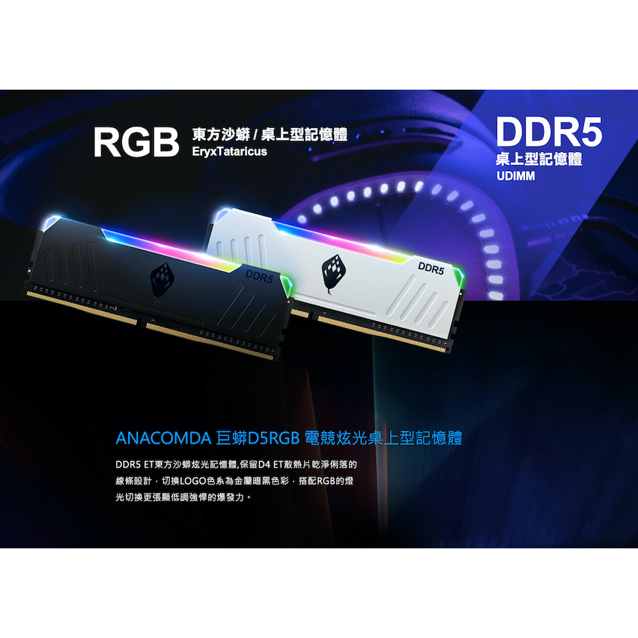 ANACOMDA 巨蟒 ET DDR5 6000 32GB (16GBX2) 雙通 RGB 電競 超頻 桌上型 記憶體DDR5 6000 RGB 黑色|DDR5 6000 RGB 白色RAMANACOMDA巨蟒 SSD固態硬碟&記憶體模組 官方旗艦店