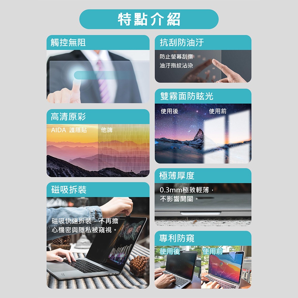 【AIDA】MacBook 系列 磁吸式防窺保護貼 (防窺+抗藍光/霧面)Air/Pro 13吋|Pro15.4吋 (2012-2019)|Pro16吋 (2020前)|Pro16吋 (2021後)|Pro14吋(2021-)|Air 13.6吋|Air15.3吋Keyboard & Trackpad CoversAIDA品牌旗艦館-防窺/抗藍光 保護貼專賣