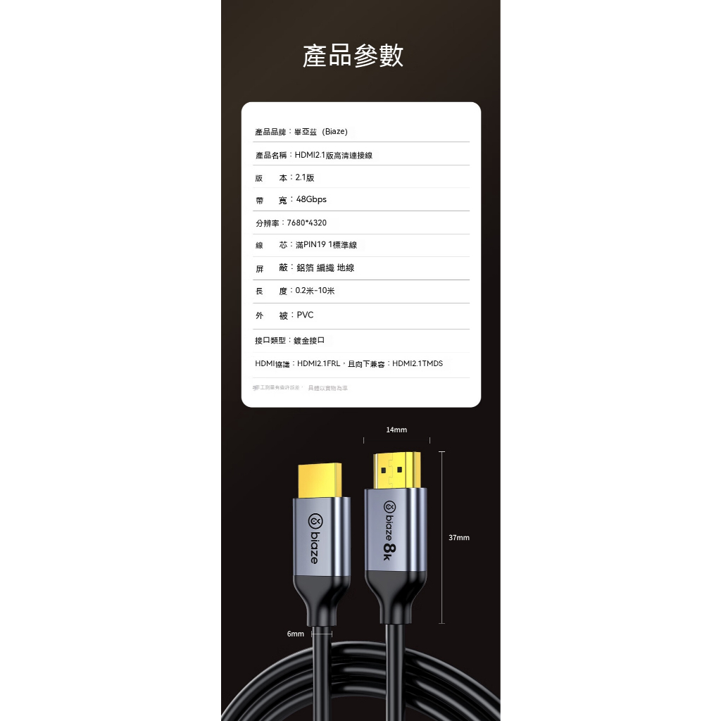 biaze畢亞茲 HDMI線2.1版 8k/60hz高清傳輸線 1m/2m/3m/5m/8m /電視/電腦/投影/遊戲1m|2m|3m|5m|8mNetwork Cables & ConnectorsBIAZE畢亞茲 品牌旗艦館|台灣總代理