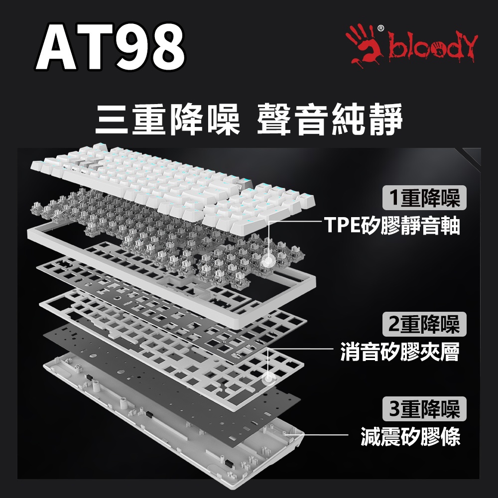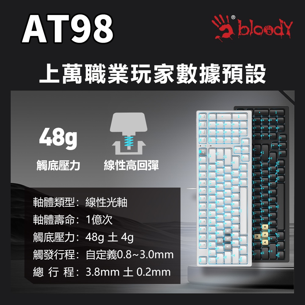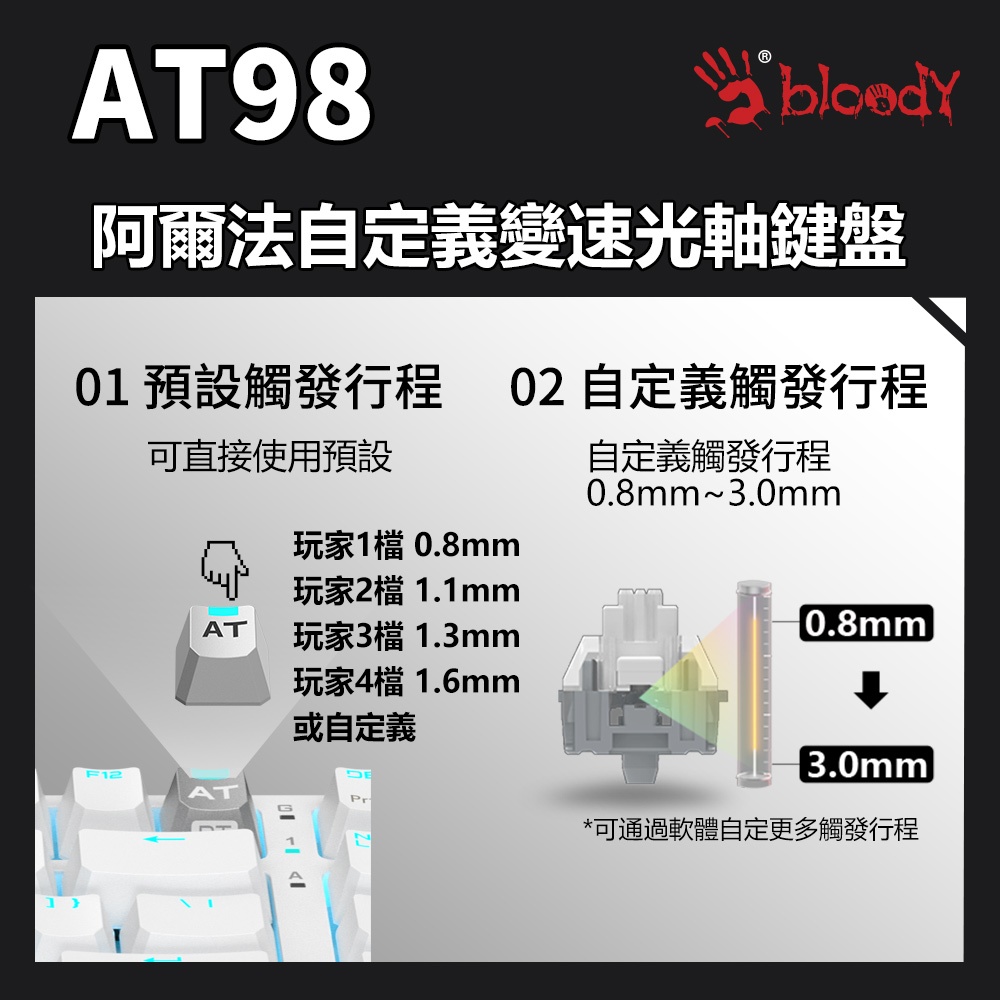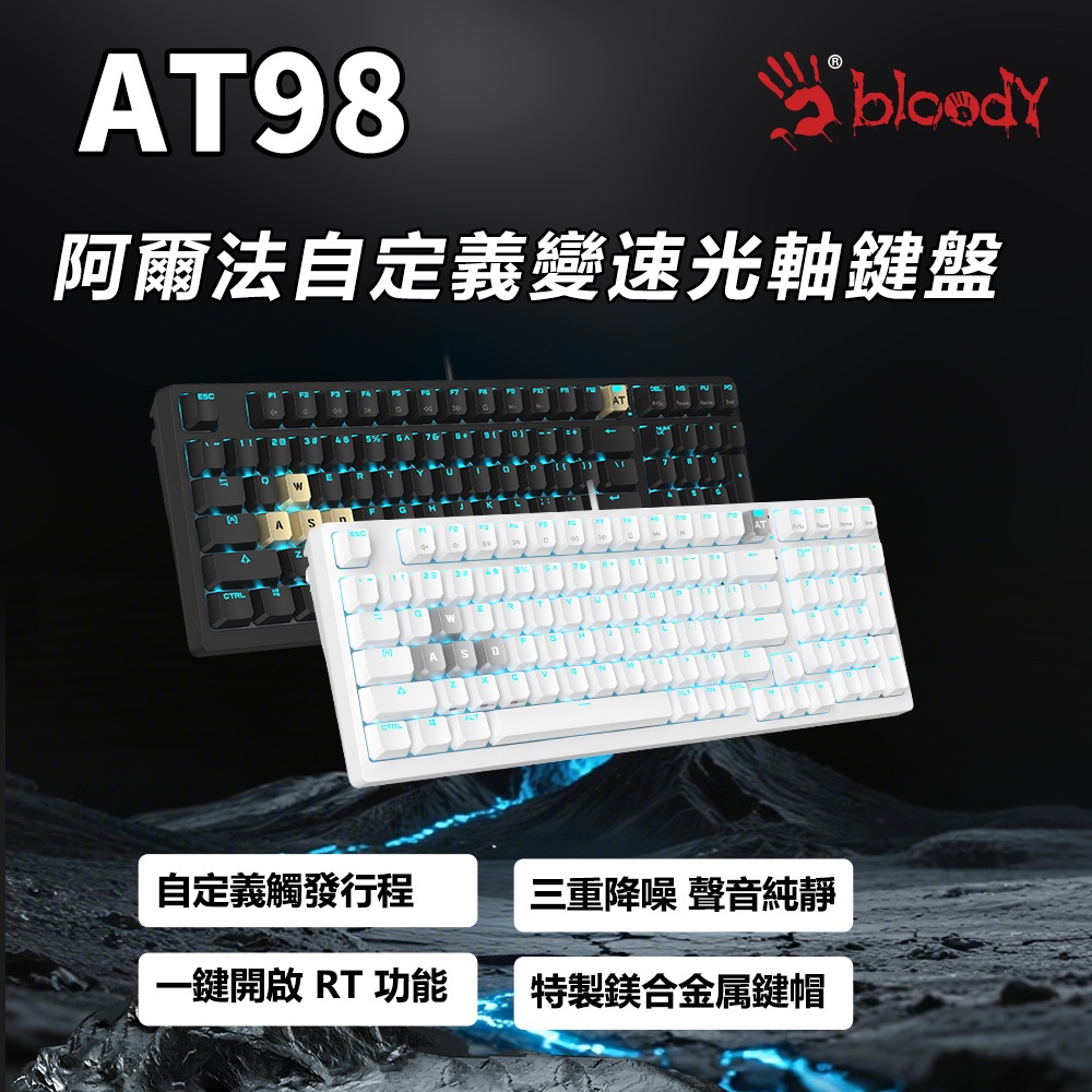 AT98 Rapid Trigger有線RT光軸電競鍵盤-經典元素 冰川銀/黑曜金冰川銀|黑曜金KeyboardsBloody 血手幽靈 官方直營店l A4Tech