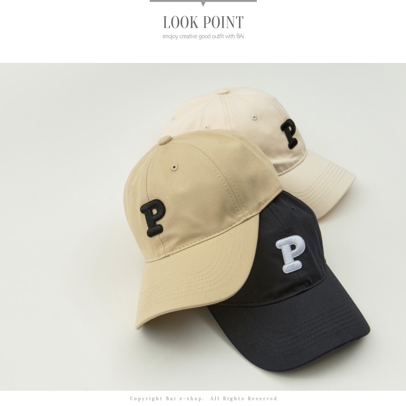 BAi白媽媽 P字棒球帽/大字母繡圖遮陽鴨舌帽^-【356065】黑(91)|卡(92)|杏(93)|黑(02)|卡(11)|杏(20)BAi白媽媽 品牌旗艦店