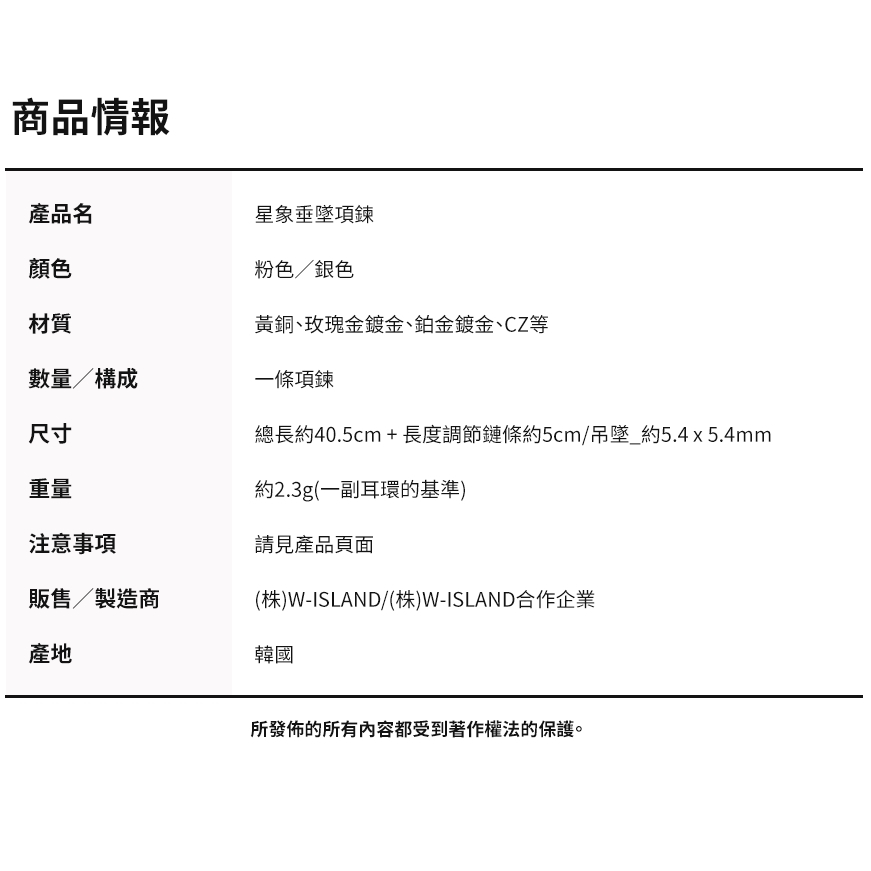 【WING BLING】星象垂墜項鍊銀色|粉色BlankTW