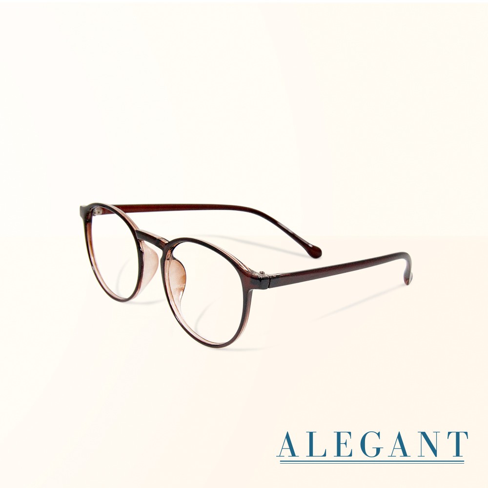 簡約造型輕量亮黑圓框UV400濾藍光眼鏡│ALEGANT亮黑|亮棕Frames & GlassesALEGANT時尚眼鏡墨鏡