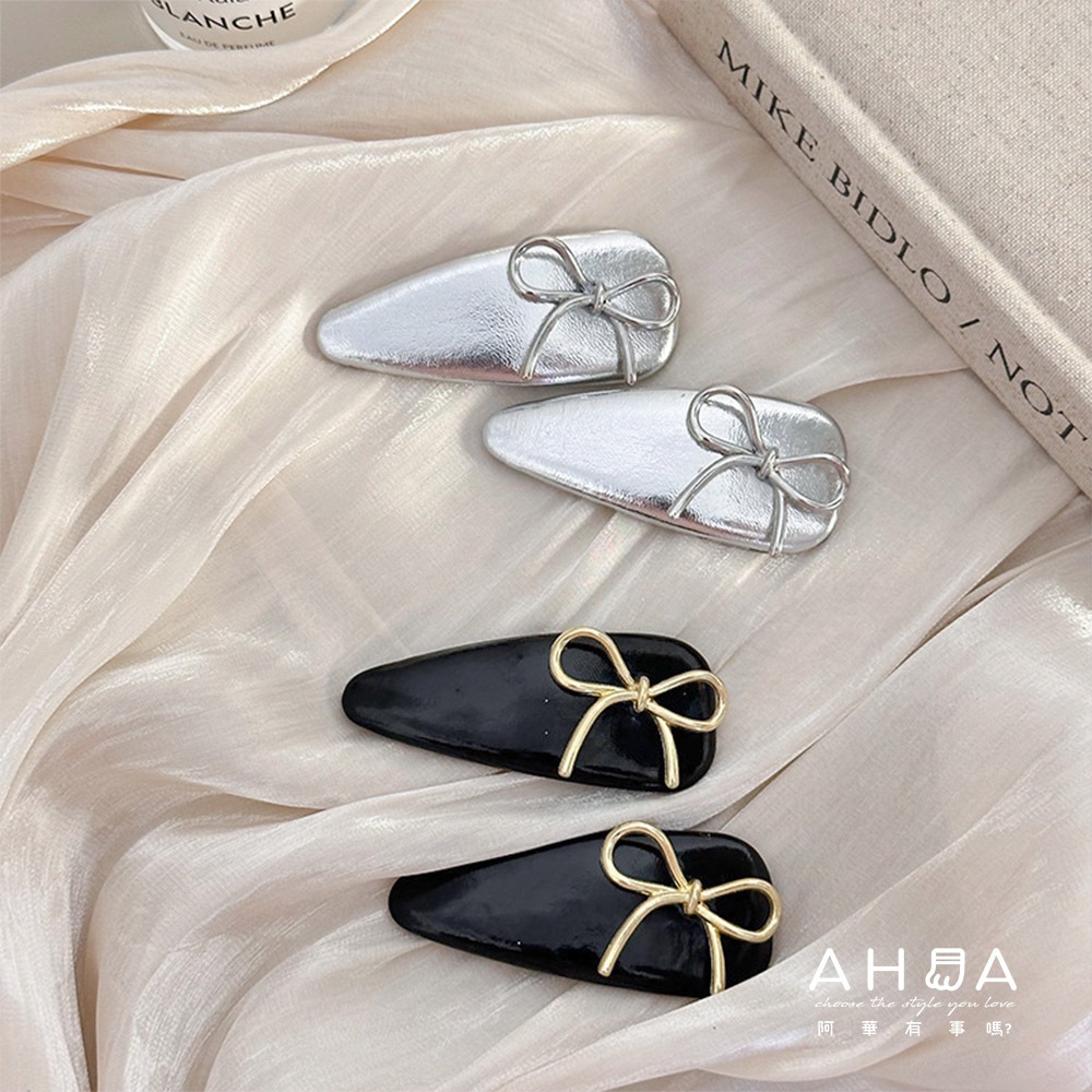 AHUA 阿華有事嗎 少女蝴蝶結皮質BB髮夾 E0111可愛 百搭 少女 髮夾 瀏海夾 髮飾 配件黑色|銀色Hair Clips & Hair PinsAHUA 韓國襪子品牌旗艦店