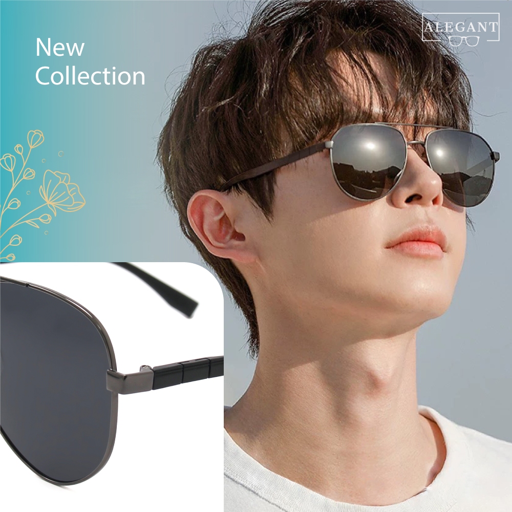ALEGANT儒雅紳士飛官寶麗來偏光墨鏡│UV400太陽眼鏡│奢耀金│深曜灰奢耀金|深曜灰SunglassesALEGANT時尚眼鏡墨鏡