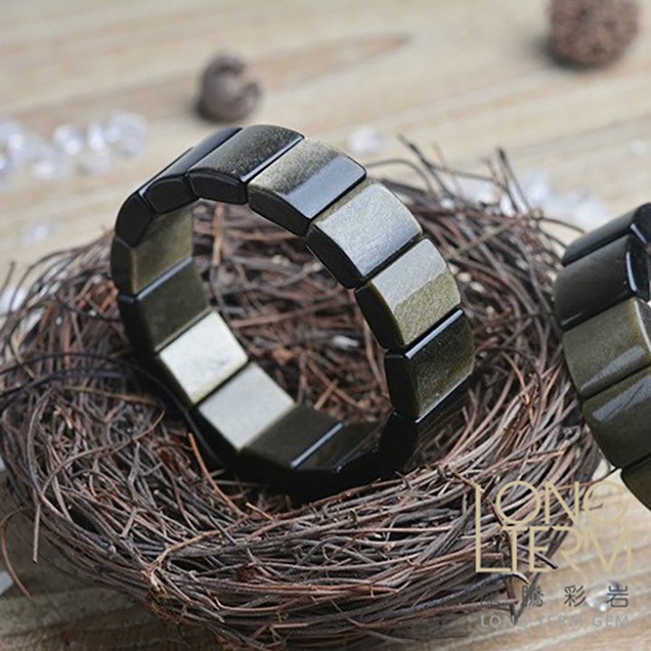【龍騰彩岩】招財神器 高優質 6A 天然金曜石 金曜石 手排 手鍊 財運旺旺來 壞運走光光 潮流新寵兒 LT2847金曜石|銀曜石《龍騰彩岩》台灣水晶礦石首選第一品牌