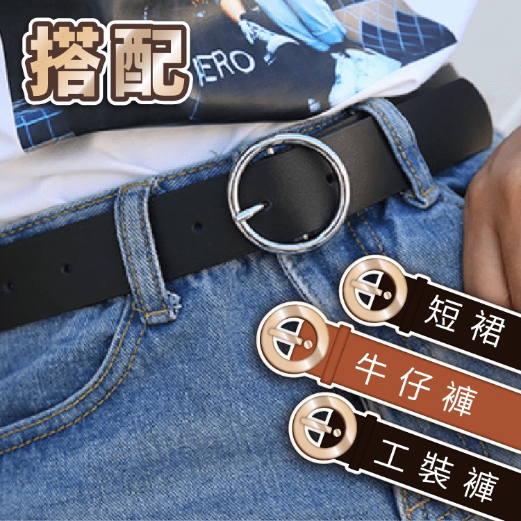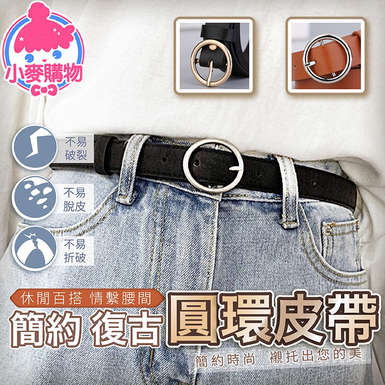 簡約圓環皮帶【小麥購物】24H出貨台灣現貨【Y383】 皮帶 金屬皮帶 腰帶 圓環皮帶 女生皮帶 牛仔褲皮帶金扣黑帶身|銀扣黑帶身 小麥購物