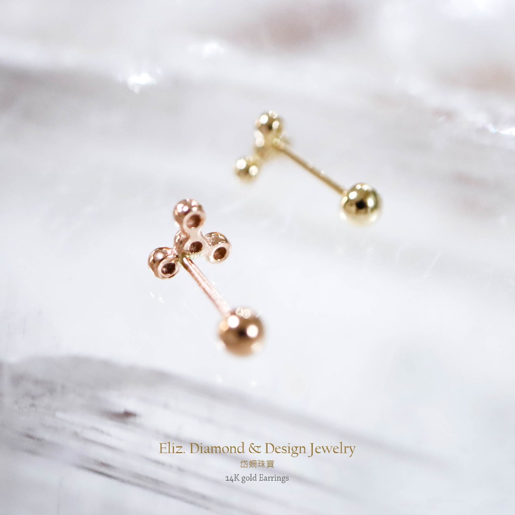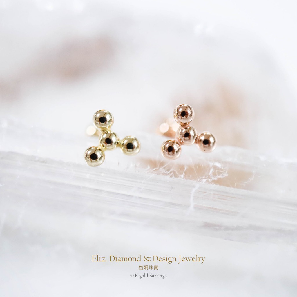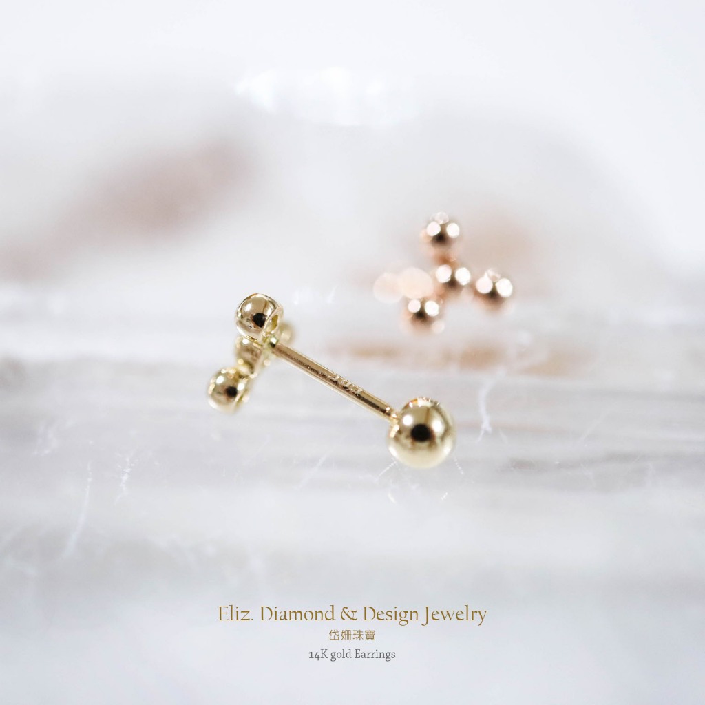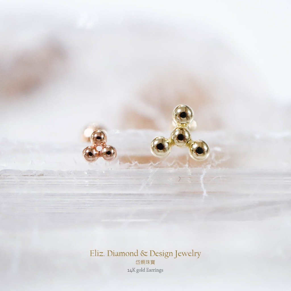 【岱姍珠寶】 14K 球狀三角形 鎖珠 黃K金 玫瑰金 耳環 耳針 K金耳環 鎖珠 鎖珠耳束 轉珠 耳骨 佩戴洗澡三小球,單支販售│14K黃K金|三小球,單支販售│14K玫瑰金|四小球,單支販售│14K黃K金|四小球,單支販售│14K玫瑰金■ 岱姍珠寶