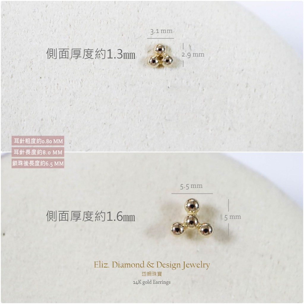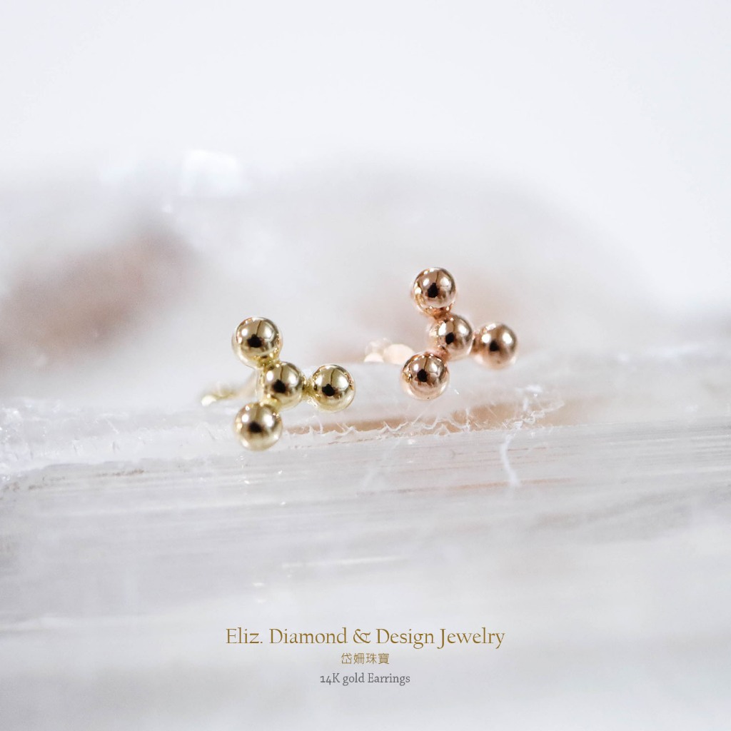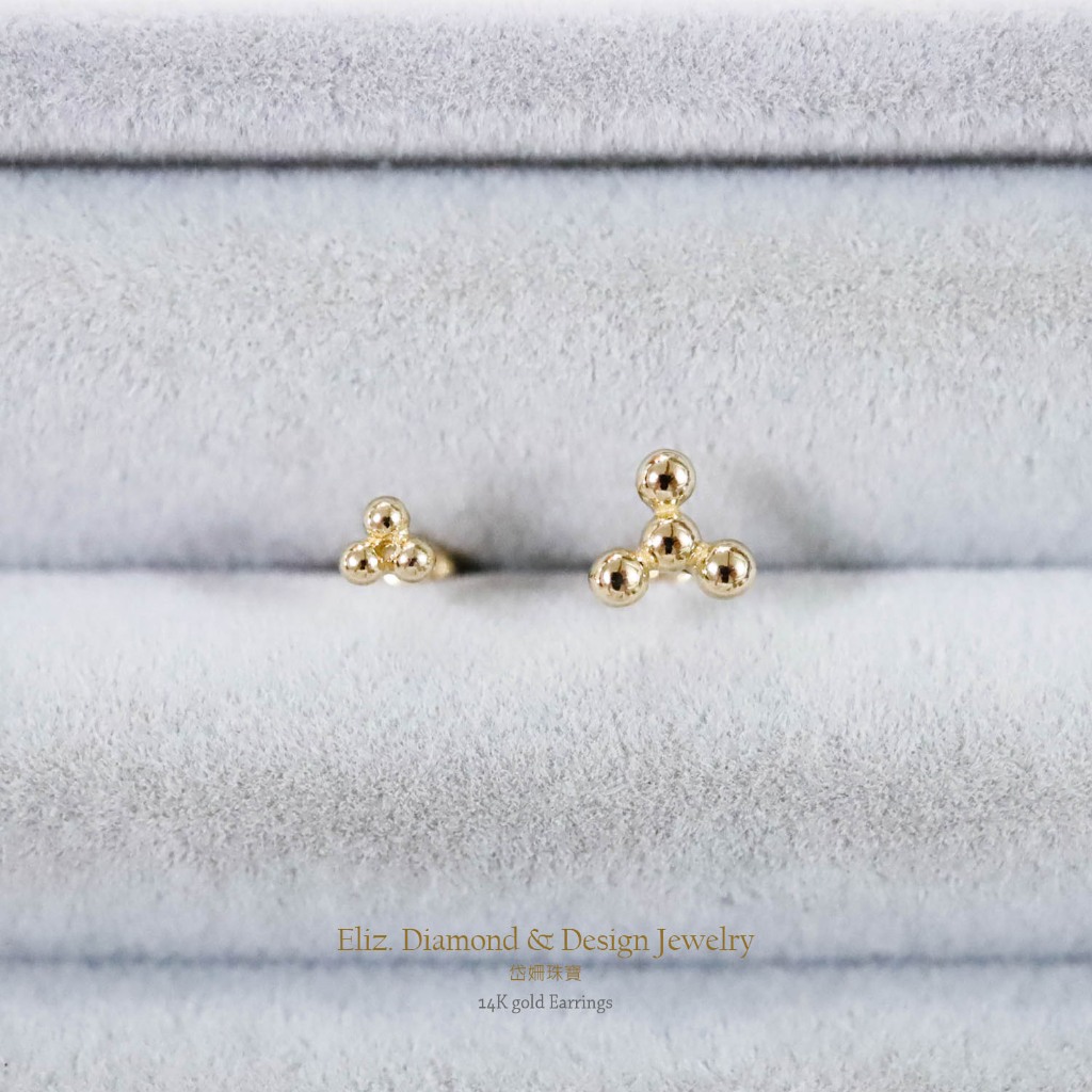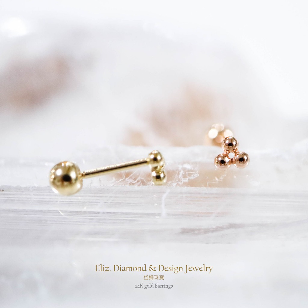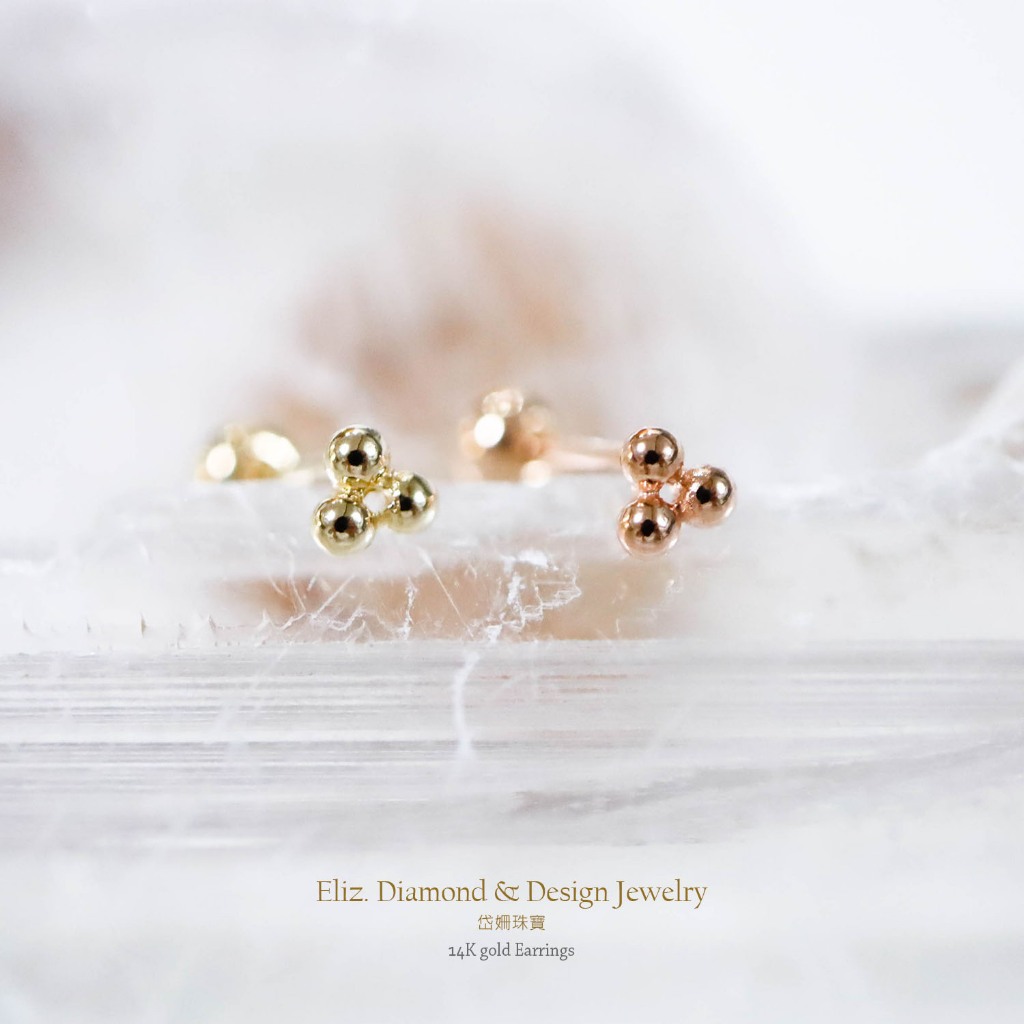 【岱姍珠寶】 14K 球狀三角形 鎖珠 黃K金 玫瑰金 耳環 耳針 K金耳環 鎖珠 鎖珠耳束 轉珠 耳骨 佩戴洗澡三小球,單支販售│14K黃K金|三小球,單支販售│14K玫瑰金|四小球,單支販售│14K黃K金|四小球,單支販售│14K玫瑰金■ 岱姍珠寶