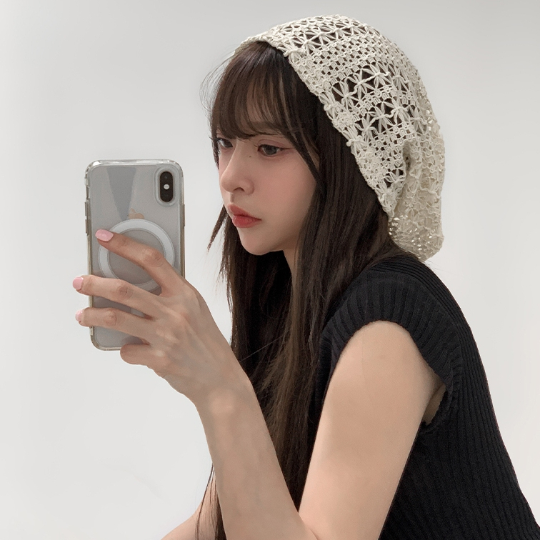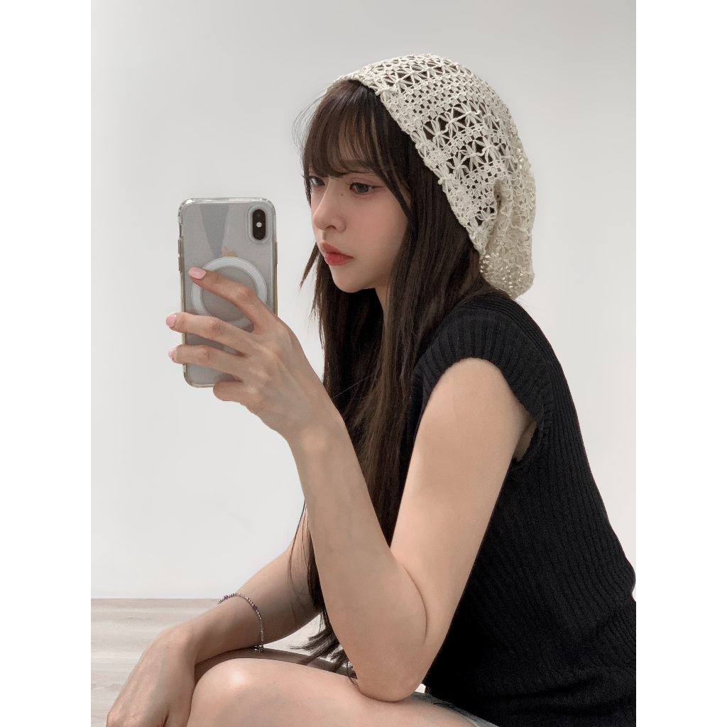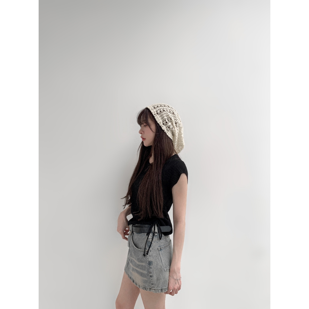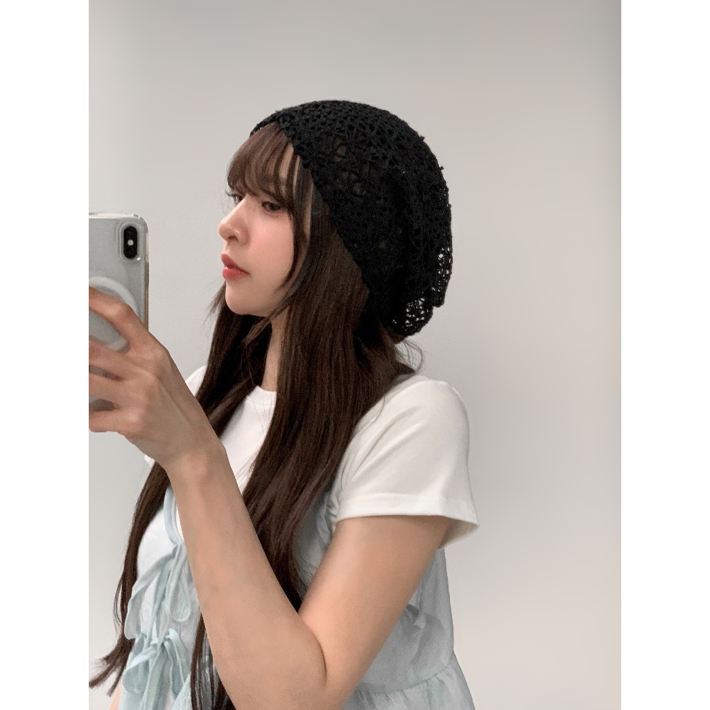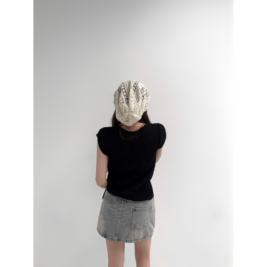 【Aa.chic熱賣商品】文藝鉤花針織簍空帽(兩色).女帽/簍空/鉤花/針織/堆堆帽/百搭/夏日/搭配【Cshie07】黑(現貨)|米白(現貨)Aa Chic