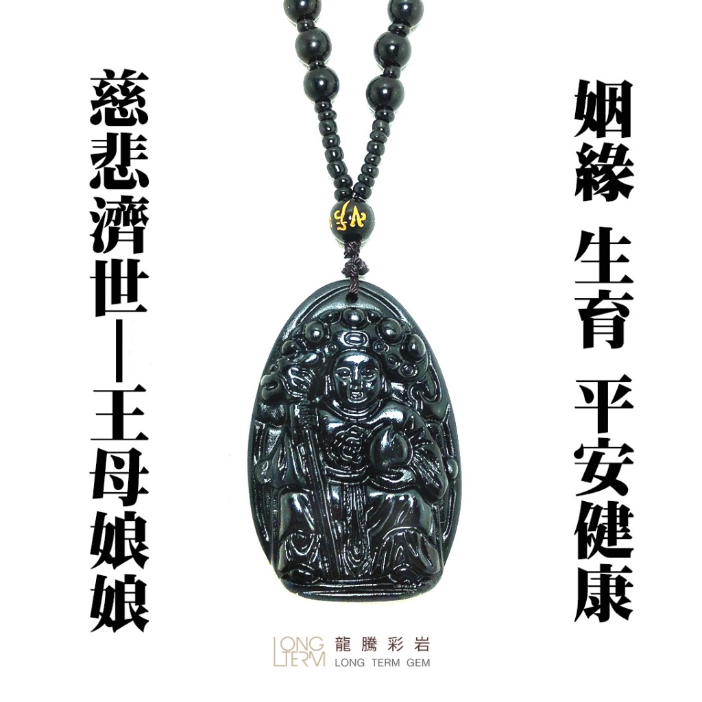 【龍騰彩岩】< 淨化加持 黑曜石 王母娘娘 天上聖母 瑤池金母 項鍊 吊墜 > 無極聖母 天尊 保平安 聖物 護身符