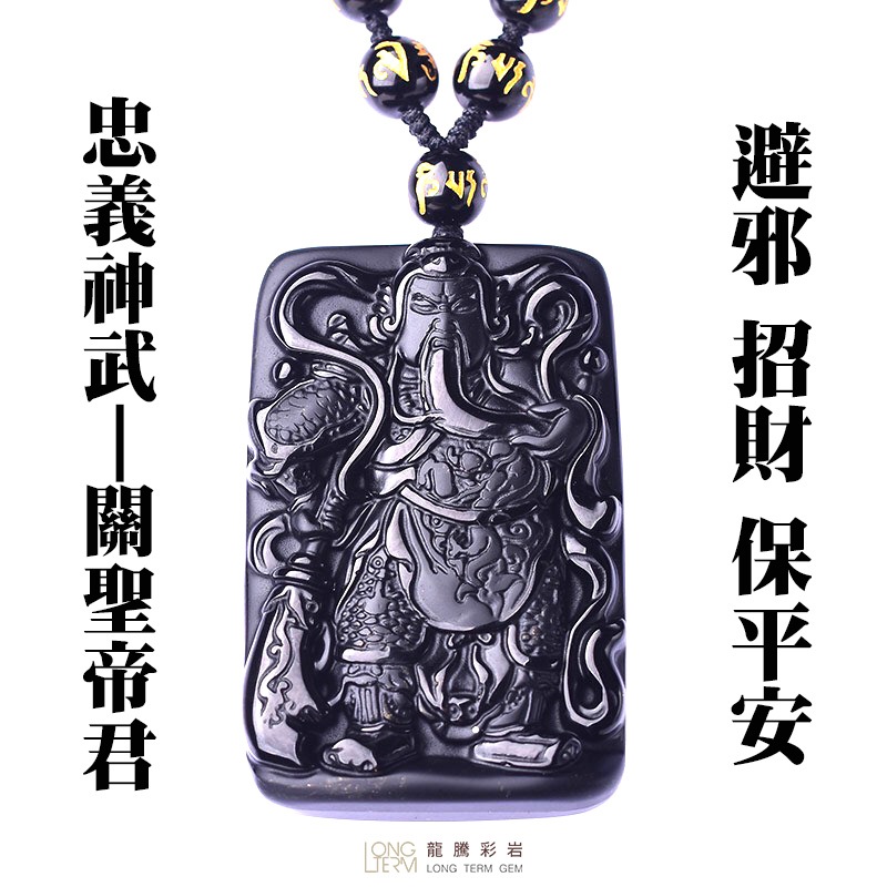 【龍騰彩岩】< 淨化加持 黑曜石 關公 關聖帝君 項鍊 > 避邪 擋煞 壞運不要來 招財進寶 事業順利 LT1147台灣現貨《龍騰彩岩》台灣水晶礦石首選第一品牌