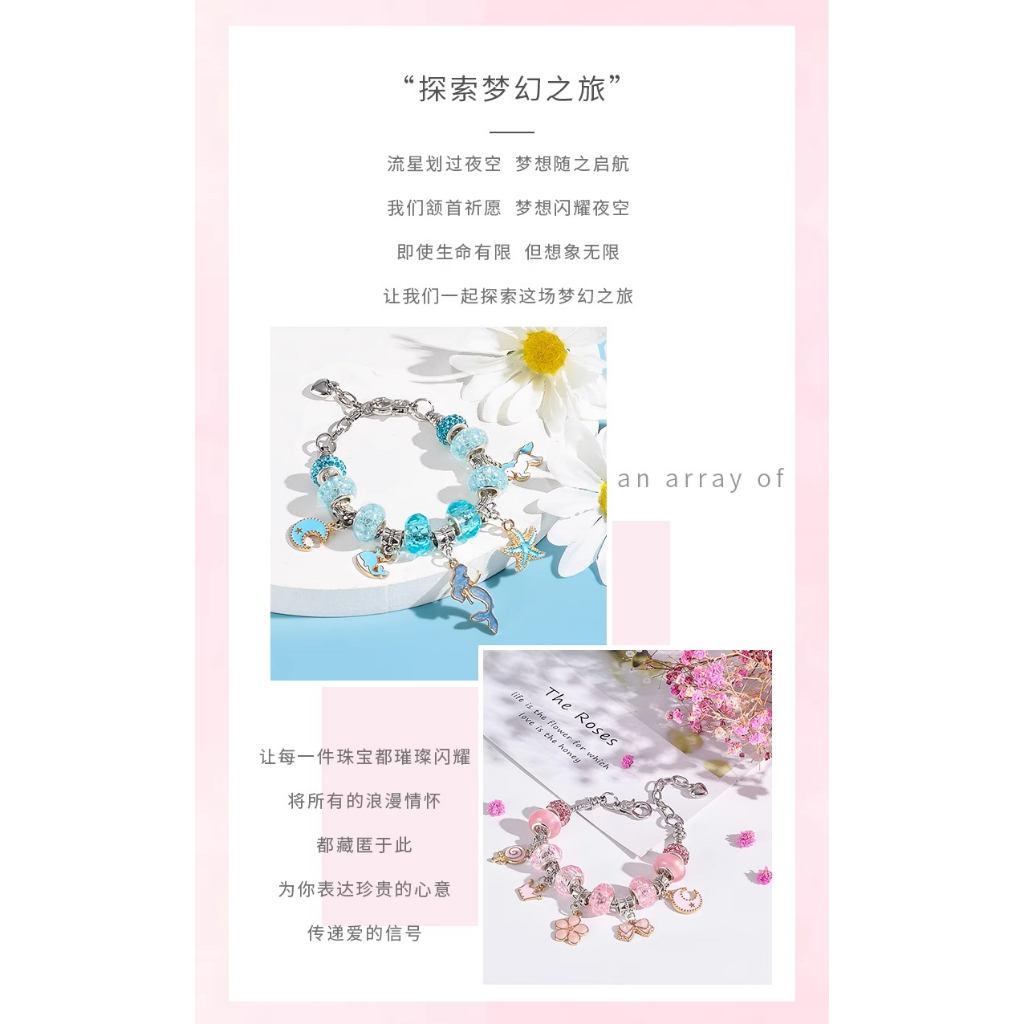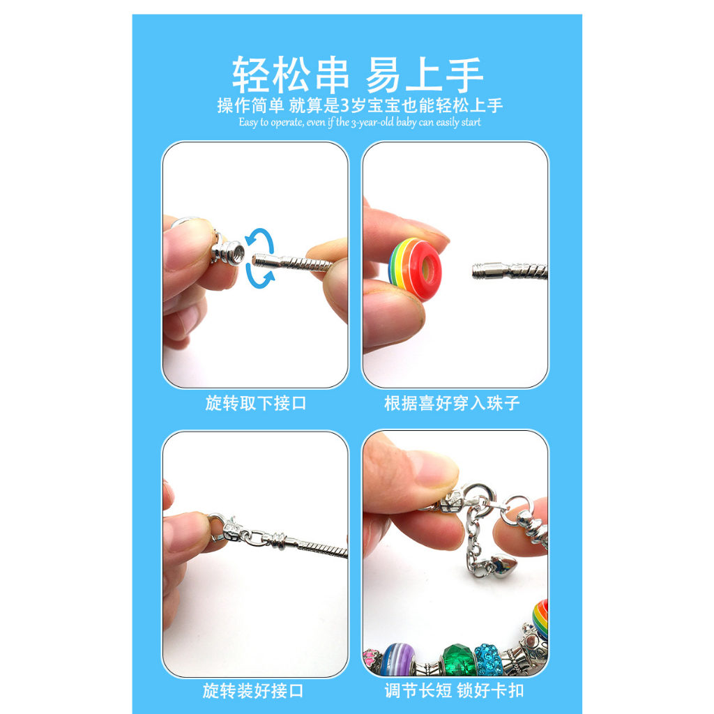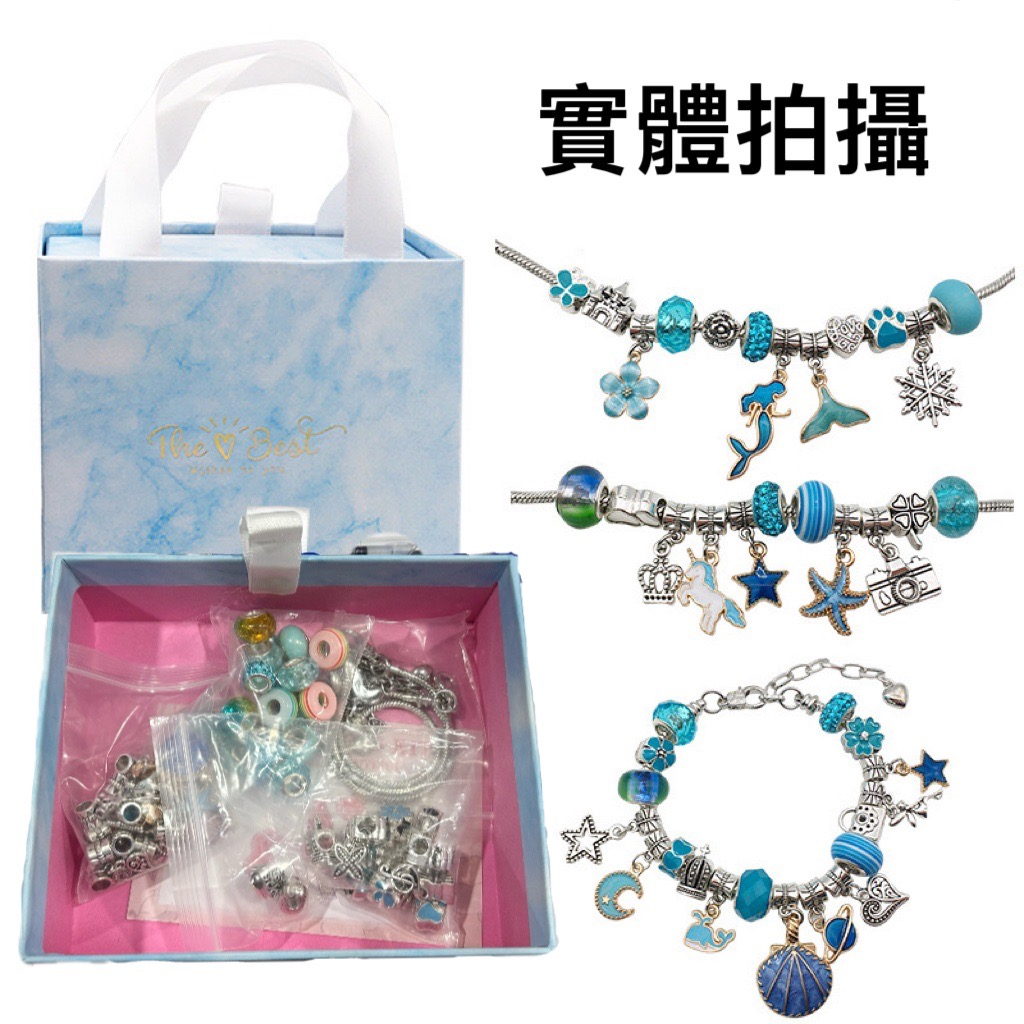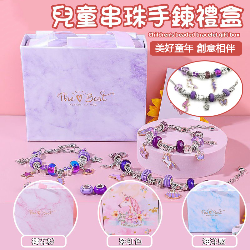 兒童串珠手鍊禮盒 1盒 現貨 隔日配 鏈 串珠 兒童串珠 水晶手鏈 手工飾品 珠套 潘朵拉 串珠材料 手鍊 兒童手鍊藍色|粉色|彩色BK批發小舖