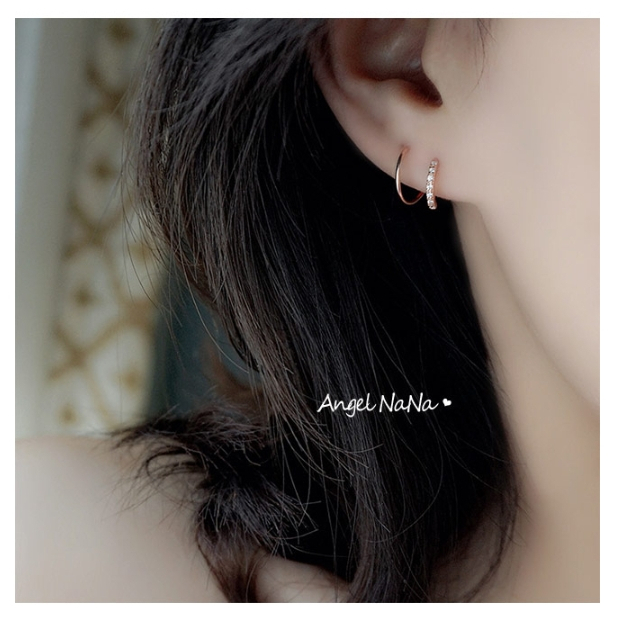 【AngelNaNa】S925純銀耳環-整體純銀網紅ins鋯石雙層彈簧圈圈耳圈(SRA0631)白金|玫瑰金AngelNaNa官方旗艦店