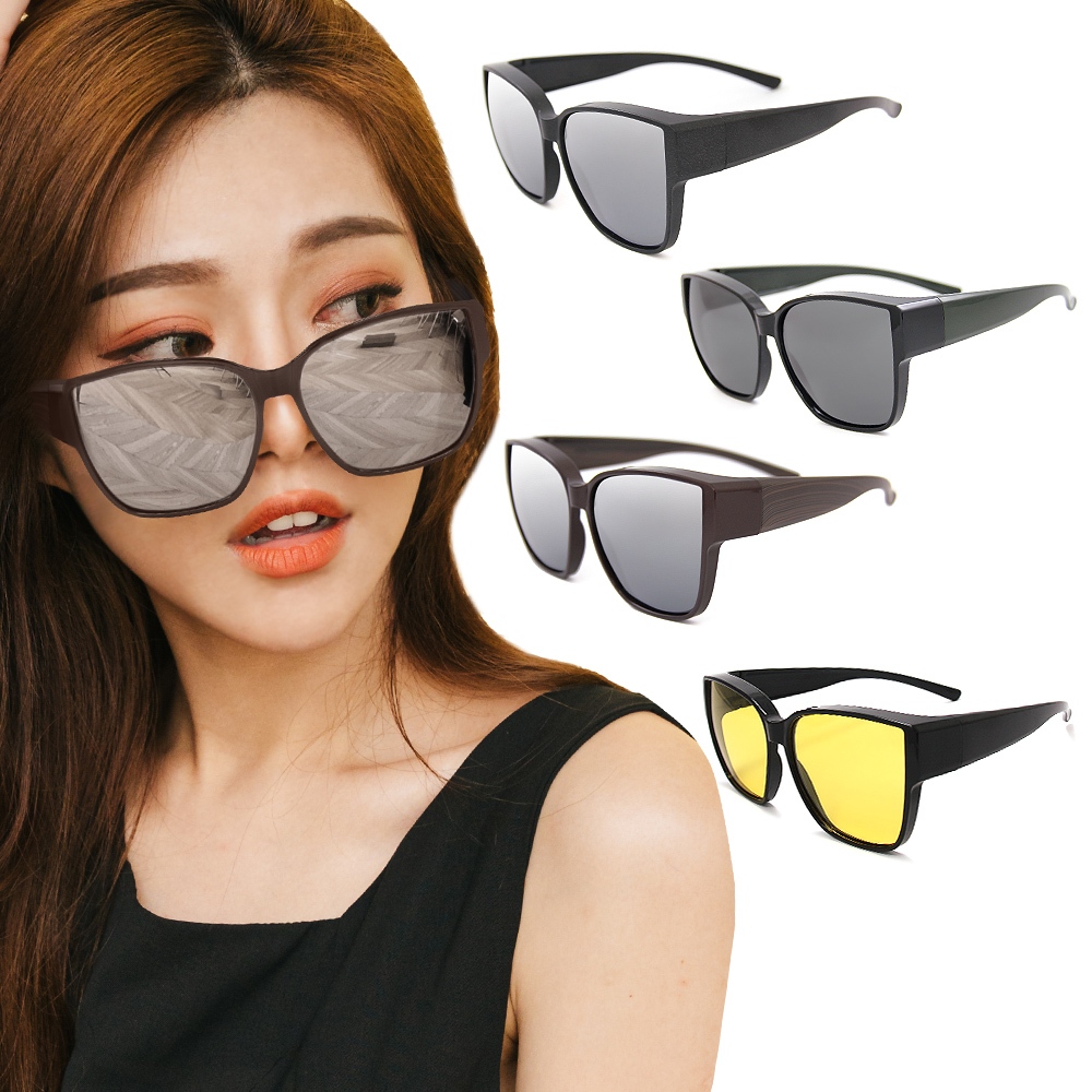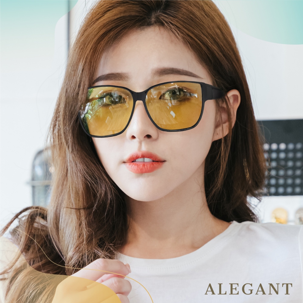 ALEGANT休閒時尚水銀方框全罩式寶麗來偏光墨鏡│外掛式UV400太陽眼鏡│包覆套鏡│車用太陽眼鏡│近視可戴外掛式星芎黑水銀方框砂黑腳|胡桃棕水銀方框木紋腳|森墨黑方框黛綠腳|杏黃色SunglassesALEGANT時尚眼鏡墨鏡